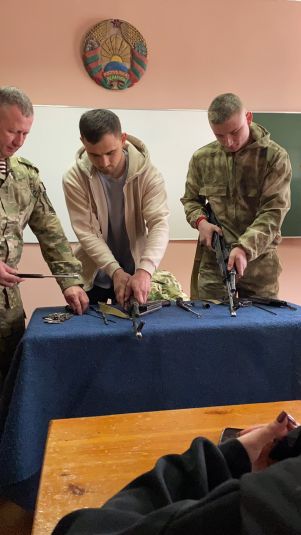 Во время экскурсии были продемонстрированы военная экипировка и вооружение. Военнослужащими проведено занятие по огневой подготовке (разборка и сборка автоматов) в том числе с участием студентов. Также на территории части находится кинологическая служба. Вместе с военнослужащими поставленные задачи выполняют немецкие, бельгийские и кавказские овчарки. Особый интерес у студентов вызвали показательные выступления милиционеров с собакой и задержание условного преступника.