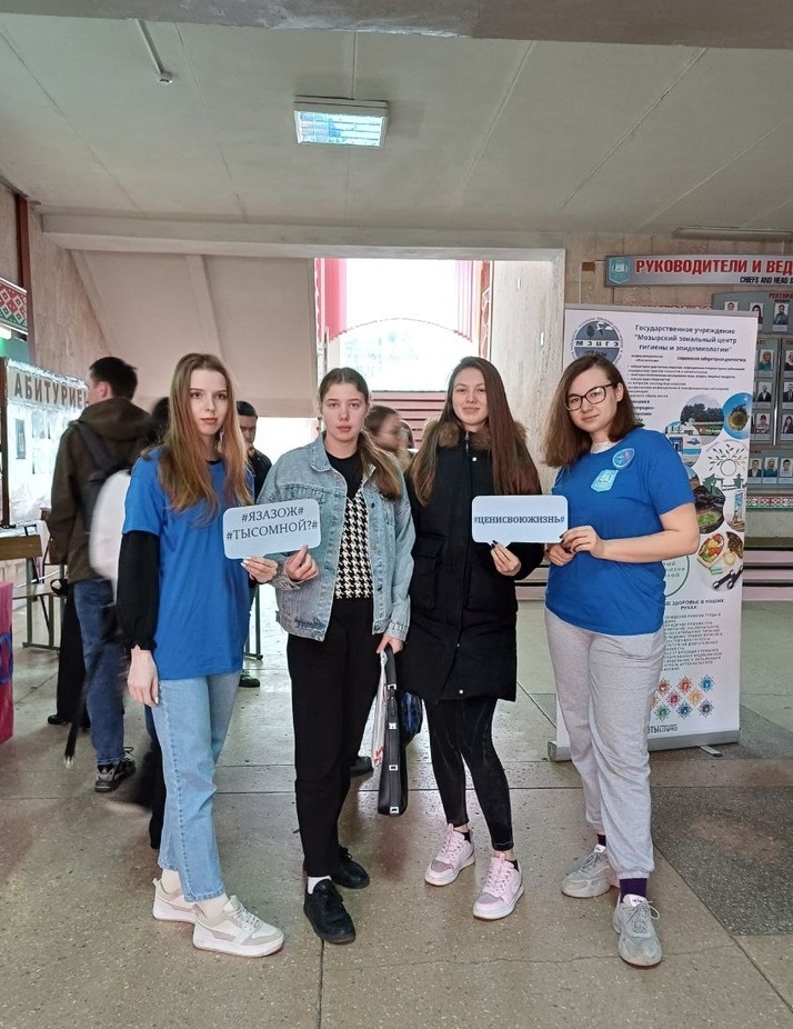 В рамках проекта «Мой стиль жизни сегодня – мое здоровье и успех завтра» на базе университета специалистами социально-педагогической и психологической службы университета совместно с ГУ «Мозырский зональный центр гигиены и эпидемиологии» была проведена информационная акция «Молодежь. Здоровье. Образ жизни». Акция была проведена по принципу «равный обучает равного».