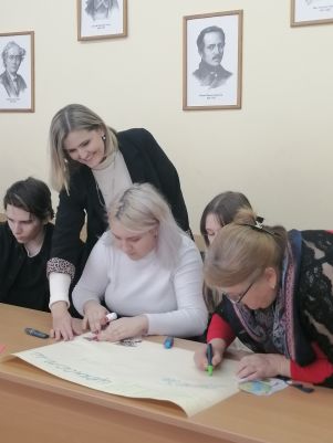Е.В. Кротова, учитель русского языка и литературы высшей квалификационной категории ГУО “Средняя школа №2 г. Калинковичи”, в процессе анализа притчи “Камень и песок” применила оригинальные приемы работы с художественным текстом: “Взгляд через кисть”, “МедиаАзбука”, “Дизайн рукописи”. В итоге студенты 1 курса специальности “Филологическое образование” подготовили стенгазету “Наши ценности”, ключевыми концептами которой стали: Беларусь, Мир, Единство, Семья, Дружба, Образование. “Высечено в камне” решение “обиды писать на песке”, а о добрых делах и поступках не забывать никогда..