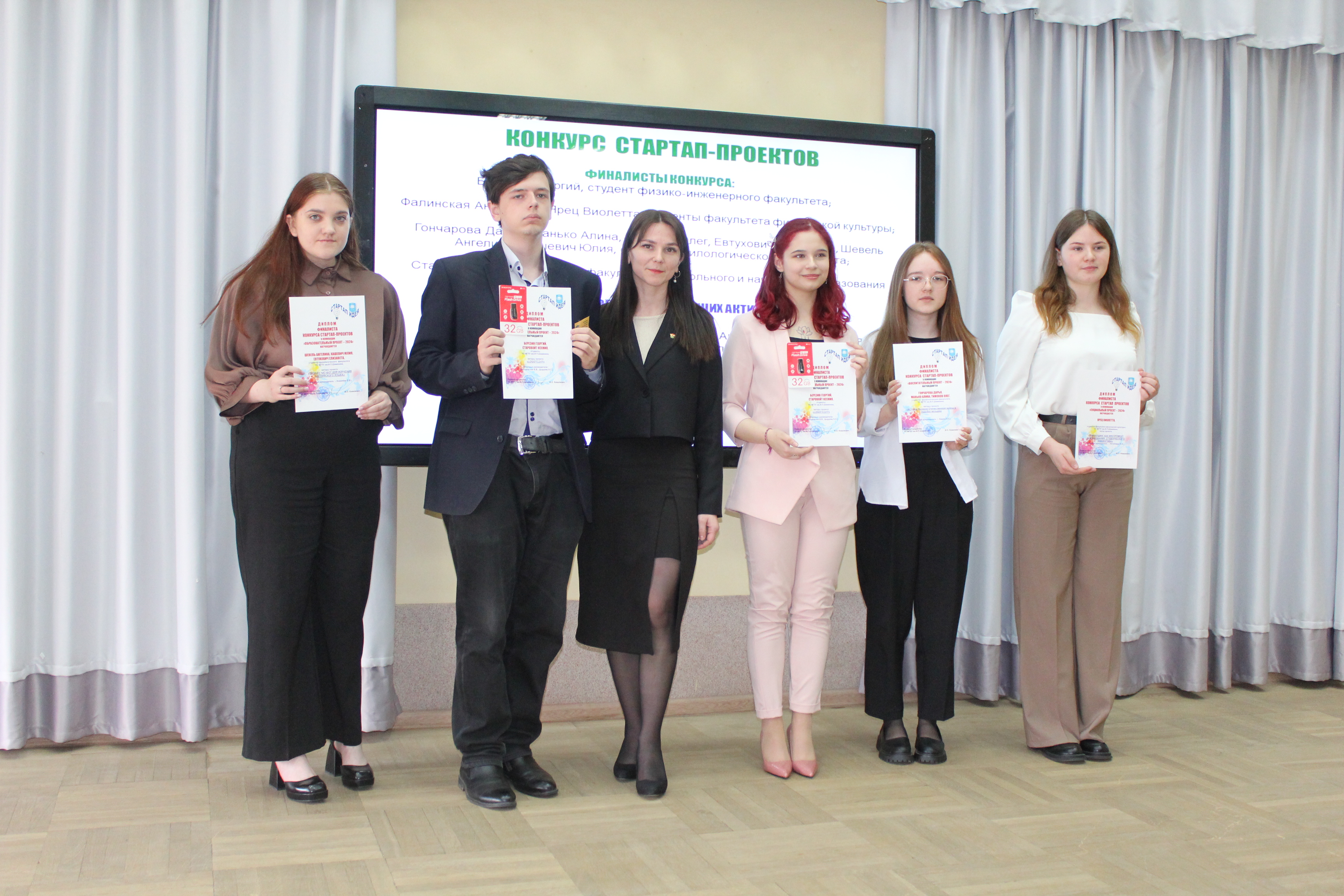 На пленарном заседании получили возможность презентовать свои научно-исследовательские проекты Ангелина Цыбулич, член авторского коллектив студентов физико-инженерного факультета, получившего грант Министерства образования Республики Беларусь на выполнение НИР «Разработка учебно-методических материалов по изучению объектно-событийного программирования на уроках информатики», и студентка технолого-биологического факультета Кристина Филипенко, финалист республиканского этапа конкурса «100 идей для Беларуси», которой от Мозырского районного комитета БРСМ был вручён памятный приз.