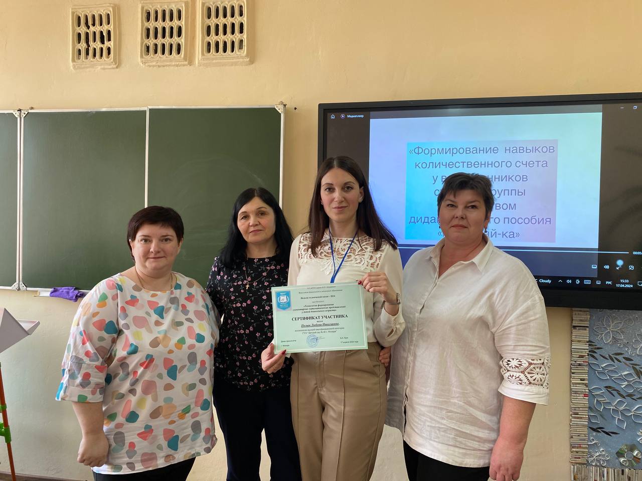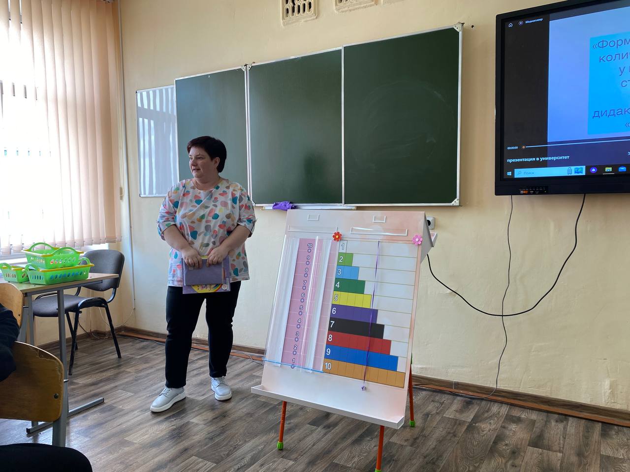 Воспитатель первой квалификационной категории ГУО «Детский сад № 9 г. Мозыря» Бондаренко Марина Владимировна продемонстрировала методику работы по формированию навыков количественного счета у воспитанников старшей группы посредством авторского дидактического пособия «Посчитай-ка».