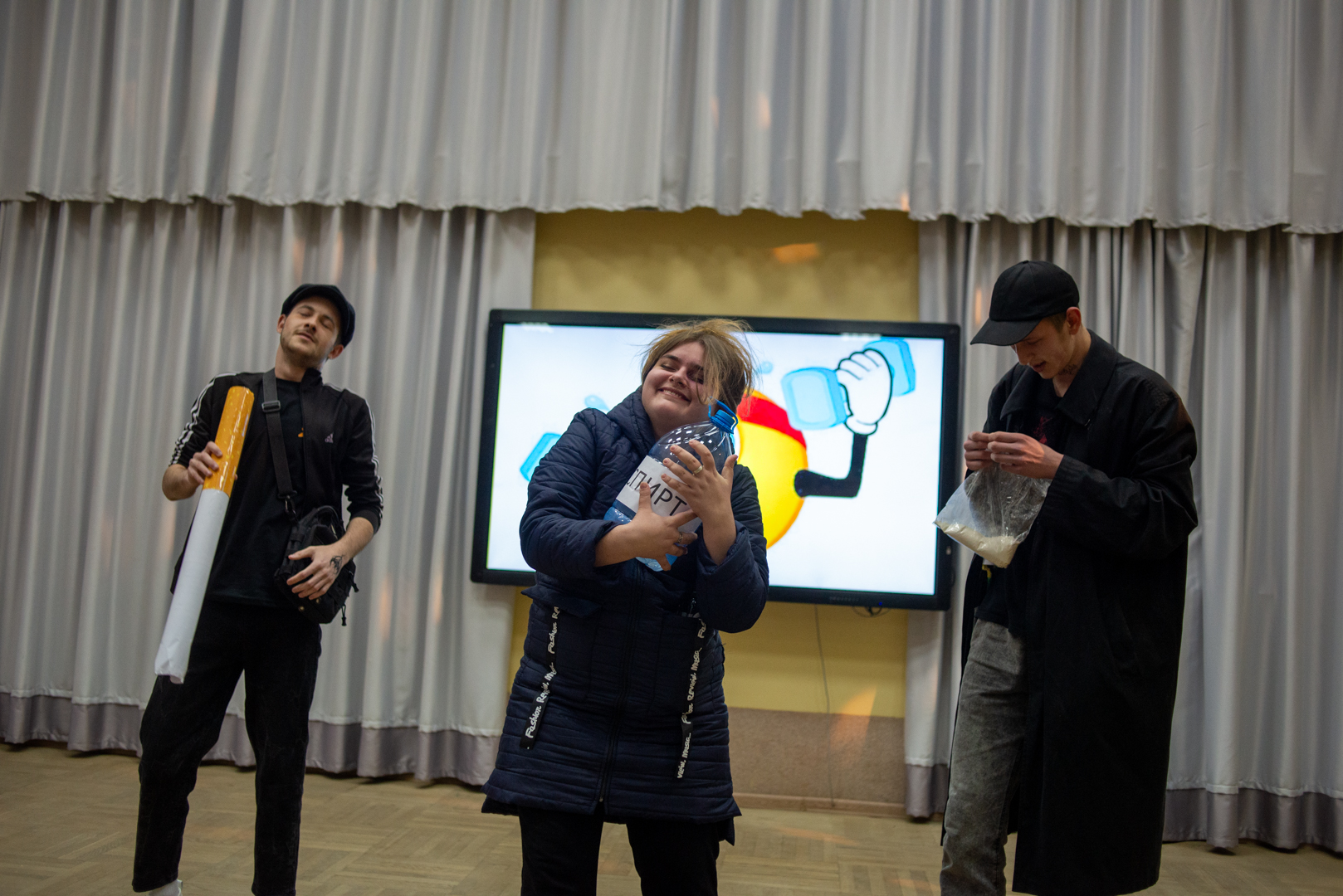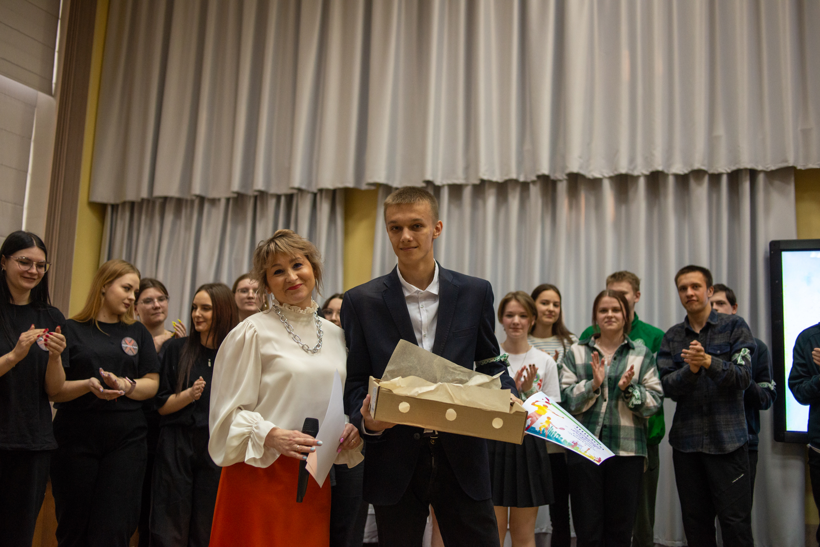 Членами жюри были определена студентка, получившая диплом в номинации «Лучшая женская роль» – Ирада Гасанова, филологический факультет. Диплом в номинации «Лучшая мужская роль» завоевал студент факультета физической культуры Егор Салбуков.