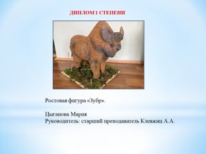 Цыганова Мария (3 курс) за ростовую фигуру «Зубр» (руководитель Клевжиц А.А.);