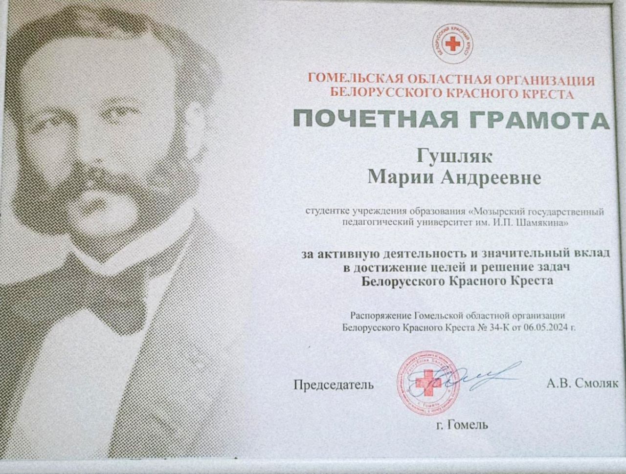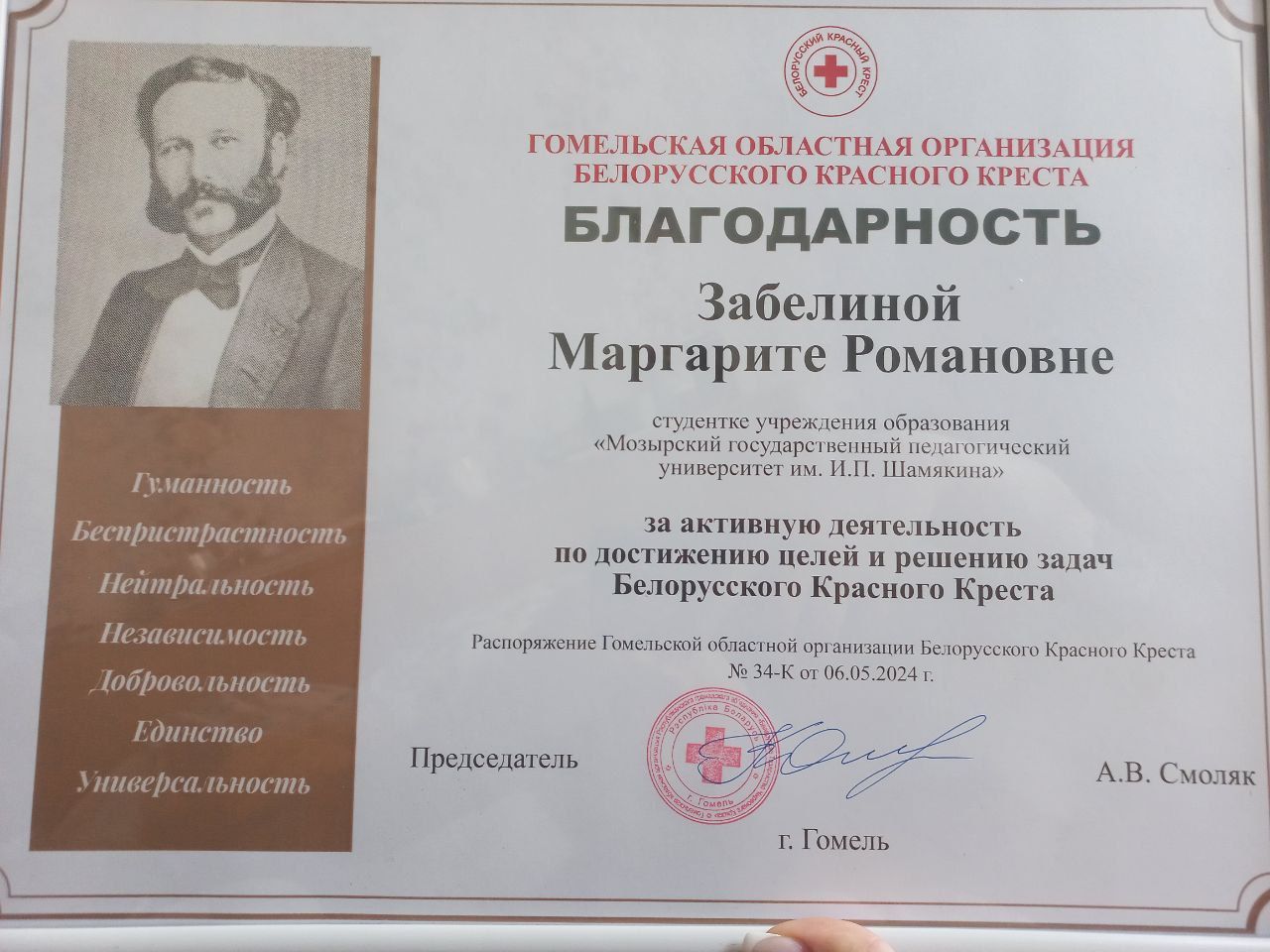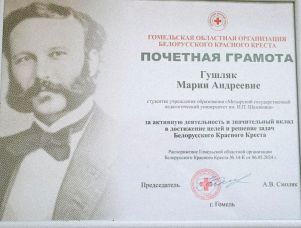 Поздравляем студенток факультета дошкольного и начального образования с заслуженными наградами от Гомельской областной организации Белорусского Красного Креста