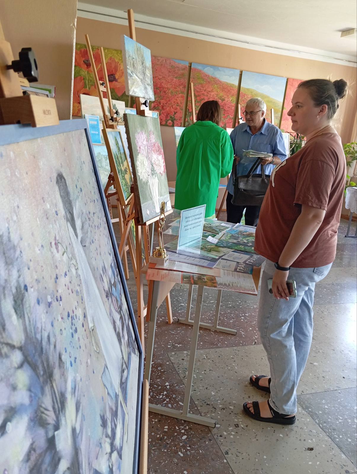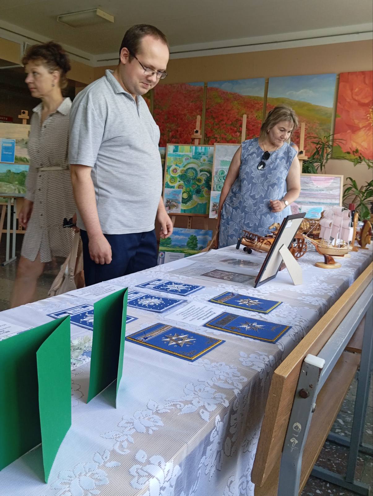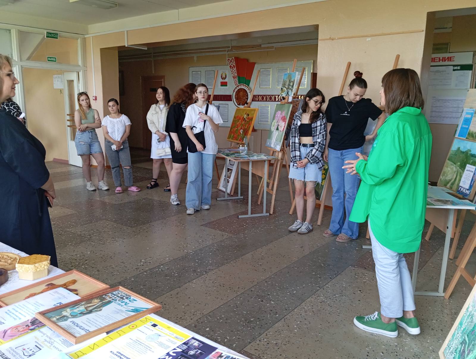 На выставке представлены разнообразные экспонаты: изделия декоративно-прикладного искусства, а также художественные работы разных жанров – от натюрморта и пейзажа до портрета и тематической многофигурной композиции. Образные решения представленных картин разнообразны: пейзажи родной Беларуси, мифологические и сказочные сюжеты, натюрморты с национальным колоритом и т.д.