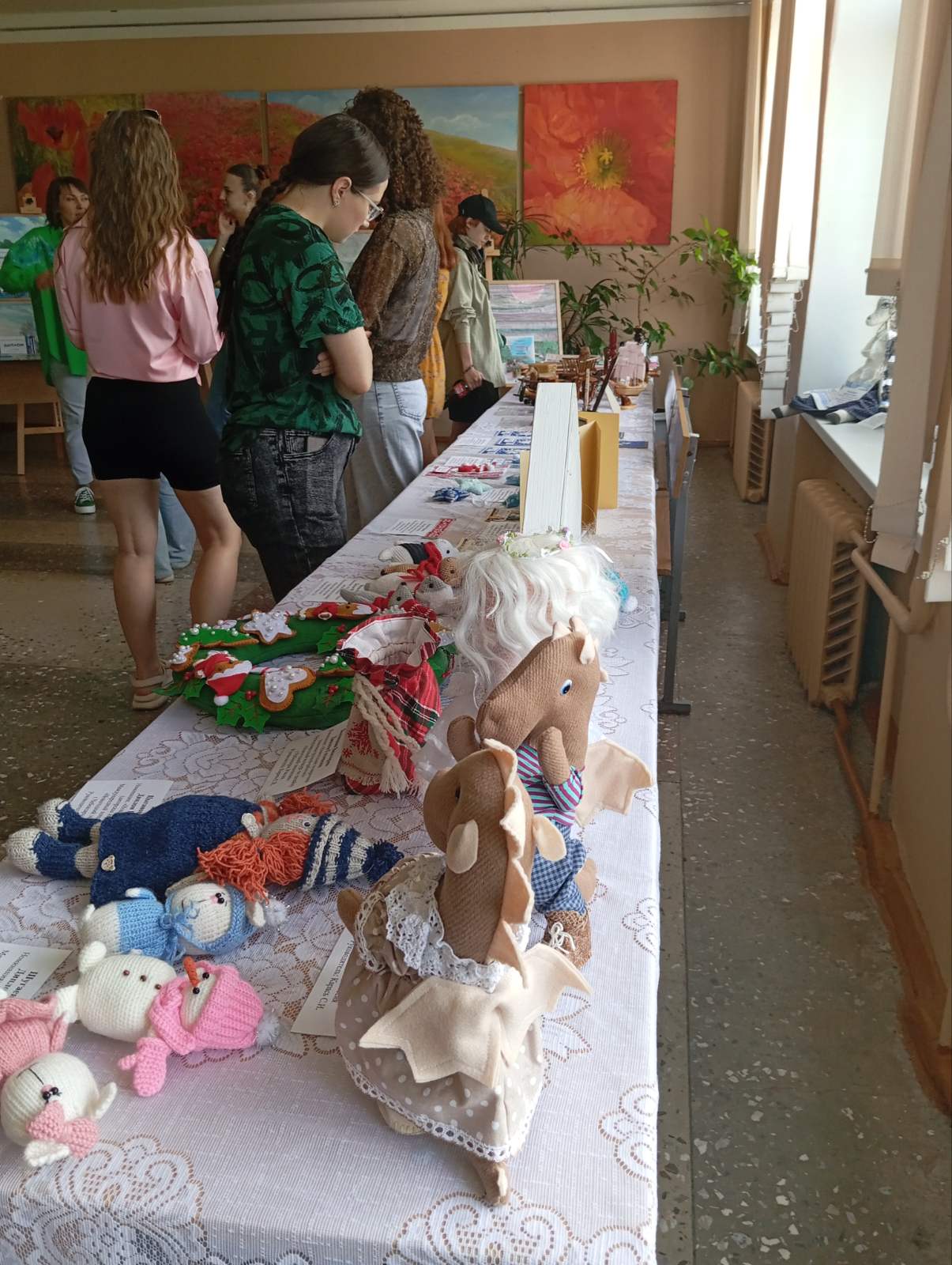В просторном зале выставлено более 100 индивидуальных и коллективных работ студентов, которые выполнены в различных техниках под руководством талантливых педагогов: доцентов Е.В.Тихоновой, С.Я.Астрейко, старших преподавателей М.А.Бондарь, С.Н.Гладкого, О.С.Дорофеевой, С.И.Карась, А.А.Клевжиц, И.Н.Макеренковой, преподавателя Е.Н.Галенко. Все работы приняли участие в выставках, фестивалях и конкурсах различного уровня: Международный конкурс по дизайну «Новогодний эксклюзив» г. Чебоксары, Международный конкурс фотографии и видеоэссе «Наша Беларусь: мой родны ўніверсітэт, мая дарагая студэнцкая вёска», Республиканский конкурс детского творчества «Арх Новации- 2023», конкурс «Елка-фэст-2023», Республиканский конкурс творческих работ «Родник духовного наследия», областной конкурс ДПТ «Мы творчасць сваю Радзіме прысвячаем» и др.