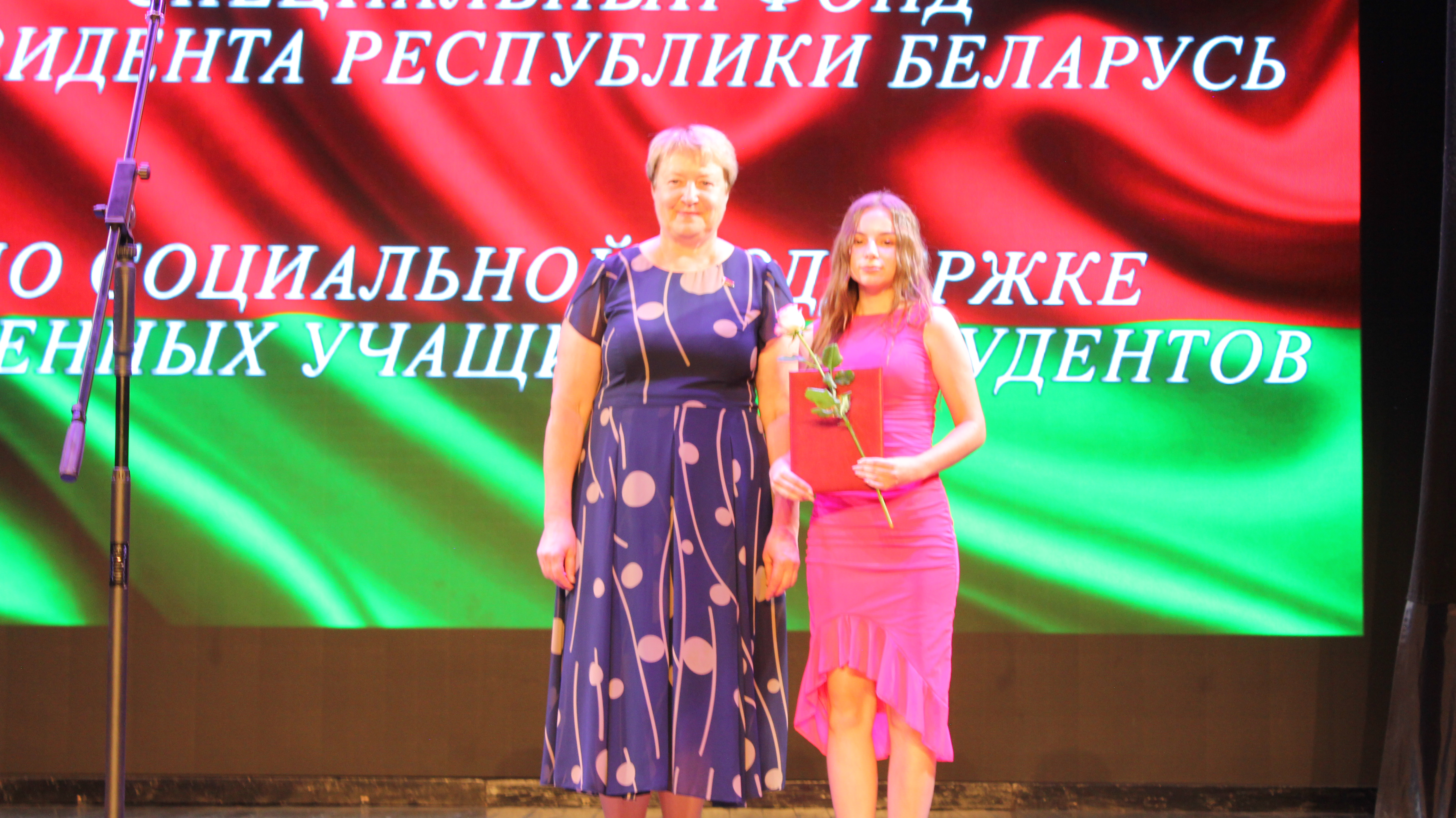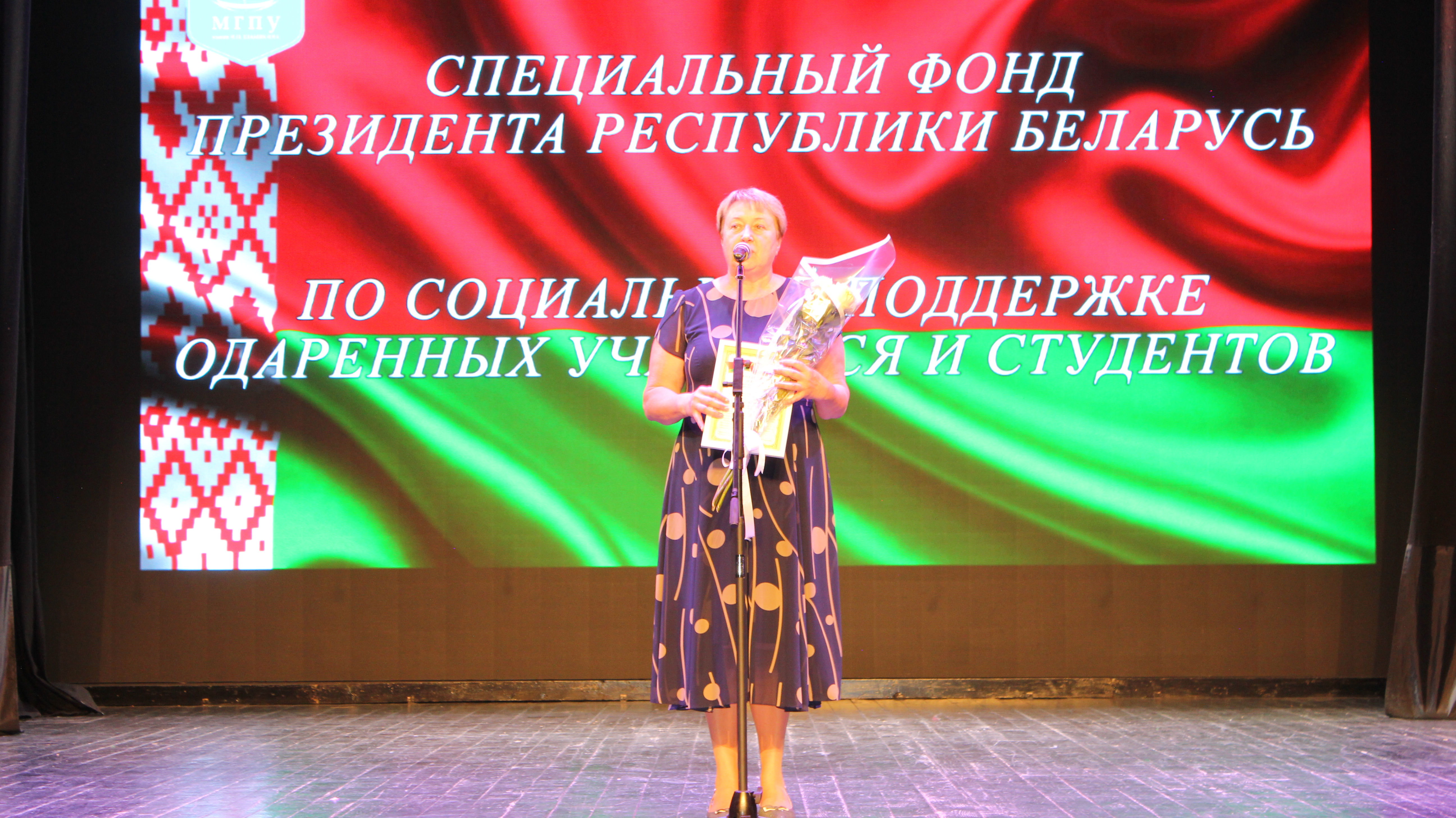 С приветственным словом выступил председатель Мозырского районного Совета депутатов Галина Михайловна Кудина. Галина Михайловна вручила приветственный адрес и Свидетельство специального фонда Президента Республики Беларусь по социальной поддержке одаренных учащихся.