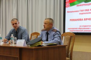 В ходе встречи Вячеслав Иванович, используя реальные примеры из служебной практики, рассказал об основных причинах совершения дорожно – транспортных происшествий, дал рекомендации по безопасному участию в дорожном движении. Студенты были ознакомлены с основными законодательными актами и мерой наказания за несоблюдение законодательства Республики Беларусь, а также получили компетентные ответы на интересующие их вопросы.