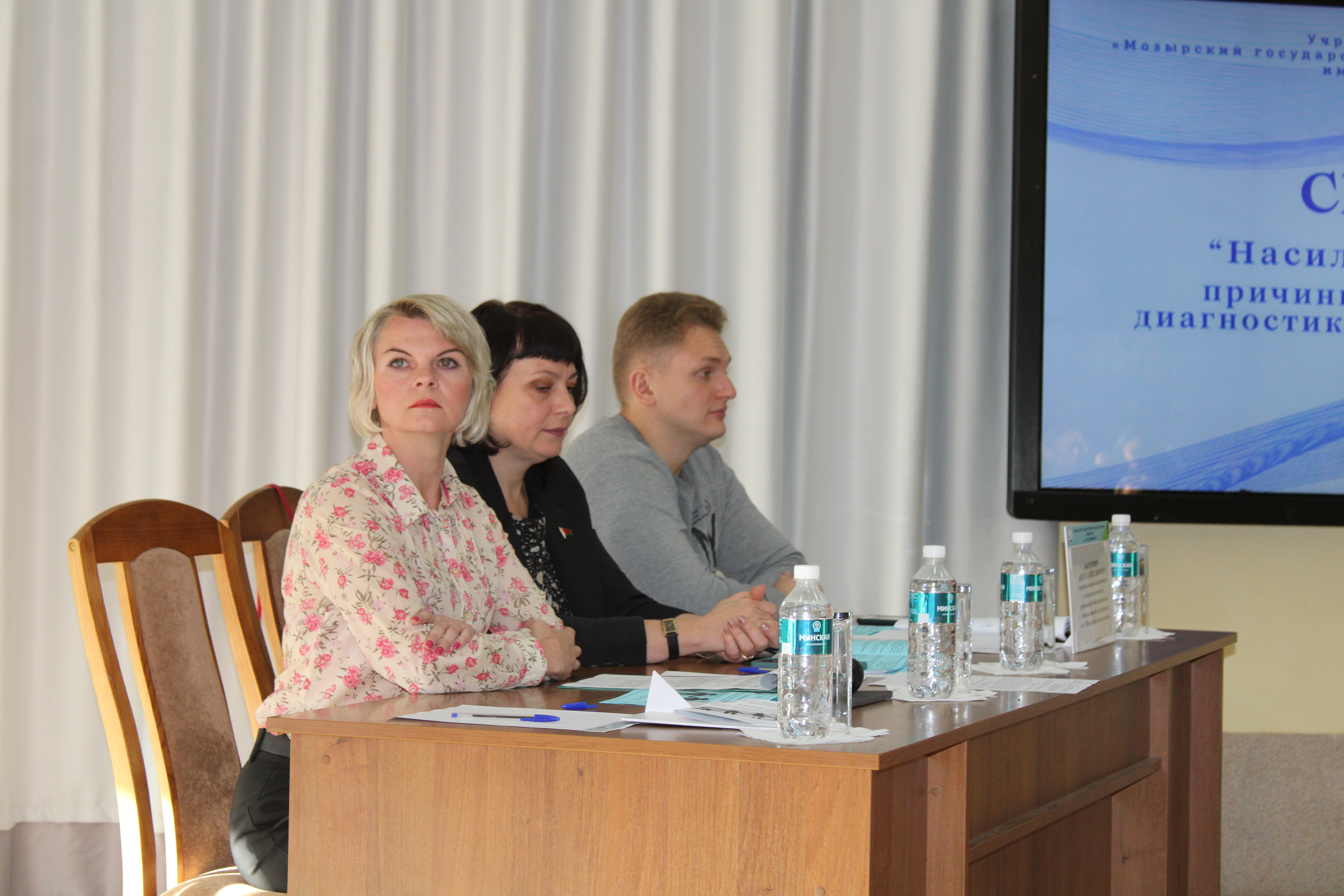 В рамках семинара перед студентами выступили заместитель председателя комиссии по делам несовершеннолетних Мозырского райисполкома Е.Г. Судибор Батуревич А.А., оперуполномоченный отдела по наркоконтролю и противодействию торговле людьми отдела внутренних дел Мозырского райисполкома, Гресько Е.В., участковый инспектор инспекции по делам несовершеннолетних отдела внутренних дел Мозырского райисполкома, Яцковец А.А. врач-психиатр-нарколог Мозырского ПНД, Ахраменко Н.Н. педагог-психолог ГУО «Мозырский районный социально-педагогический центр», Дыгун М.А. доцент кафедры психологии и социальной педагогики УО МГПУ имени И.П.Шамякина, кандидат психологических наук, доцент.