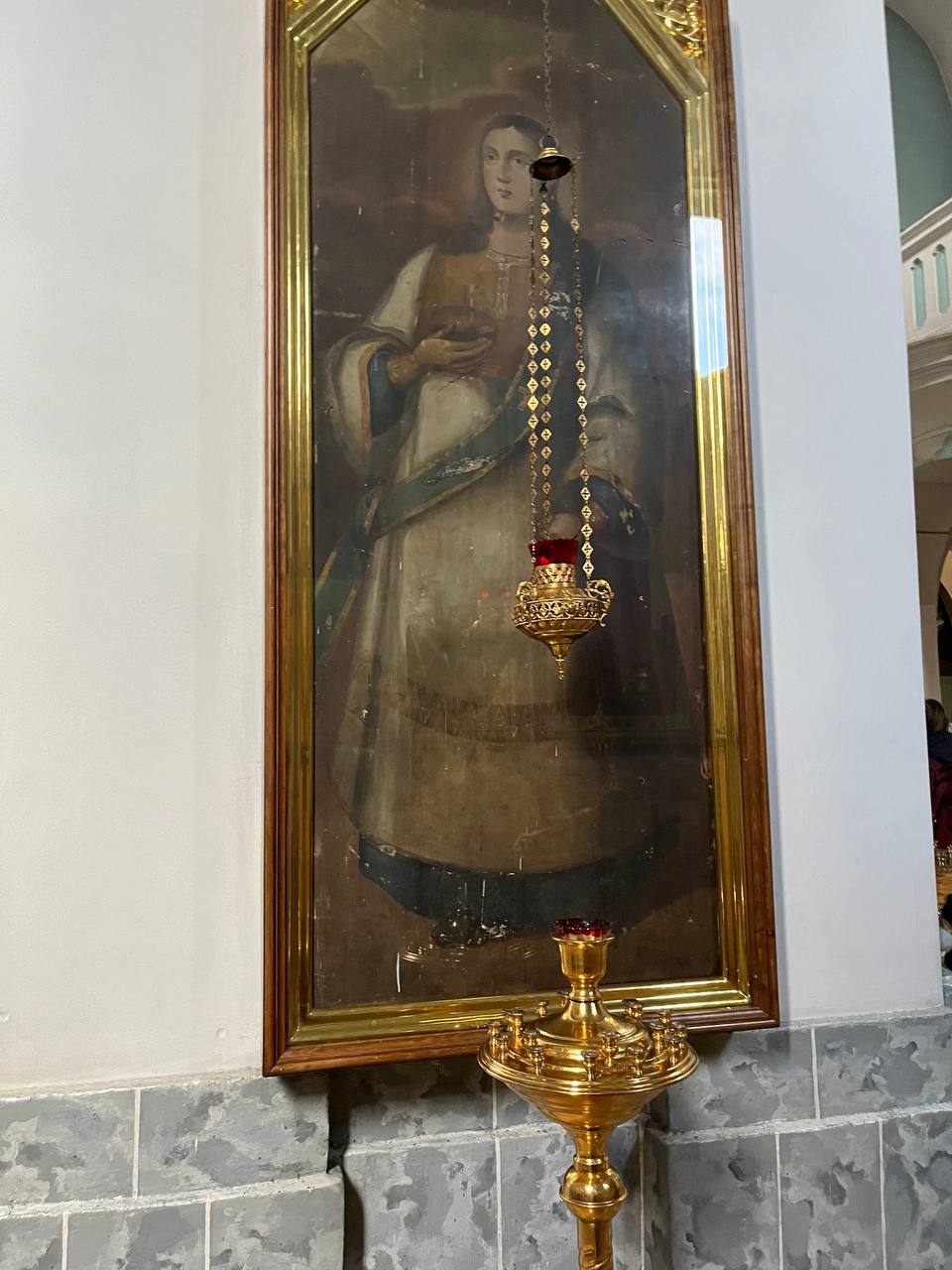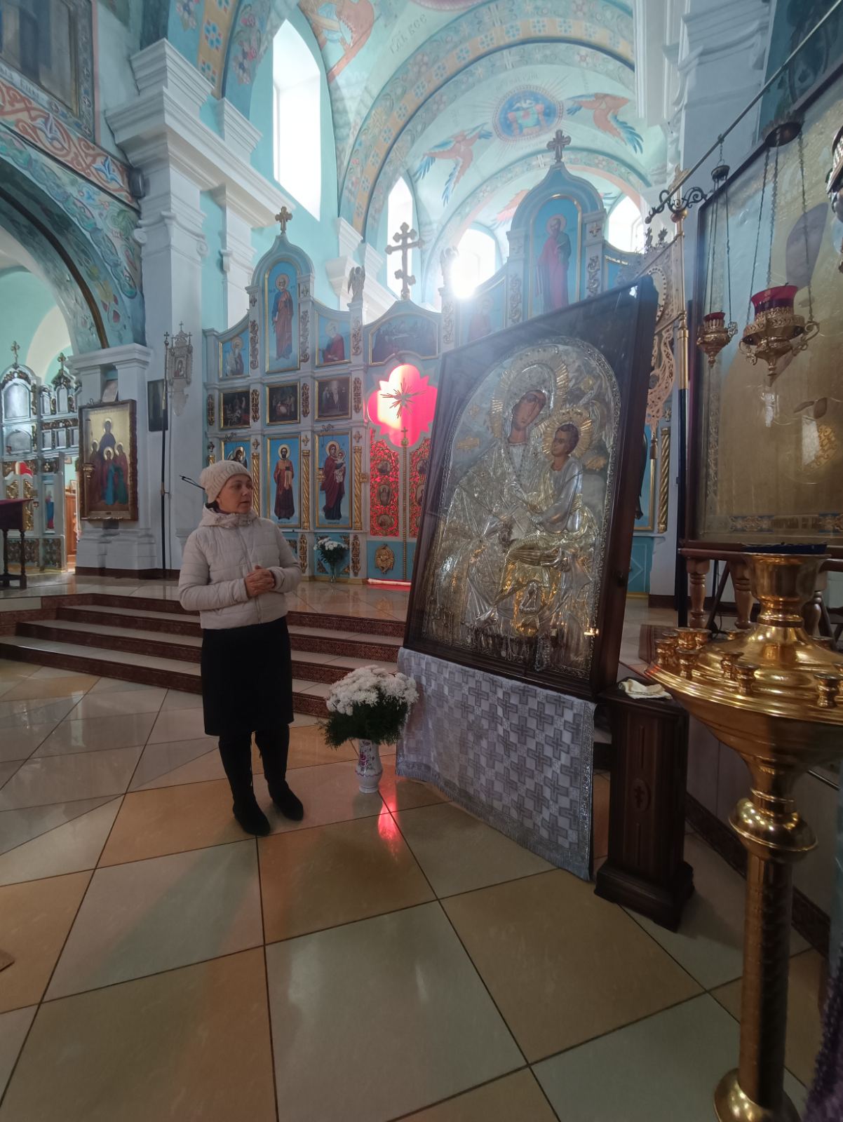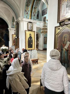 Встретила ребят библиотекарь собора Ольга Авсиевич, которая рассказала об истории и устройстве православного храма, об уникальных иконах, их значении и духовной силе, о знаменитых земляках.
