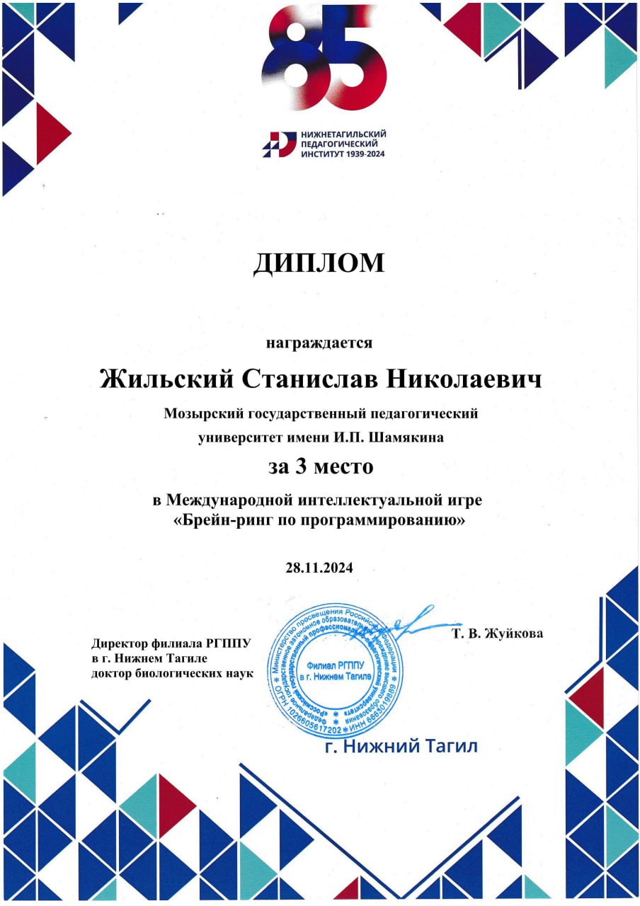 На ряду со студентами старших курсов из других учреждений образования наш университет очень достойно представили первокурсники специальности "Компьютерная физика" (Жильский Станислав, Завалей Семен, Тарасюк Евгений) - команда завоевала Диплом III степени!