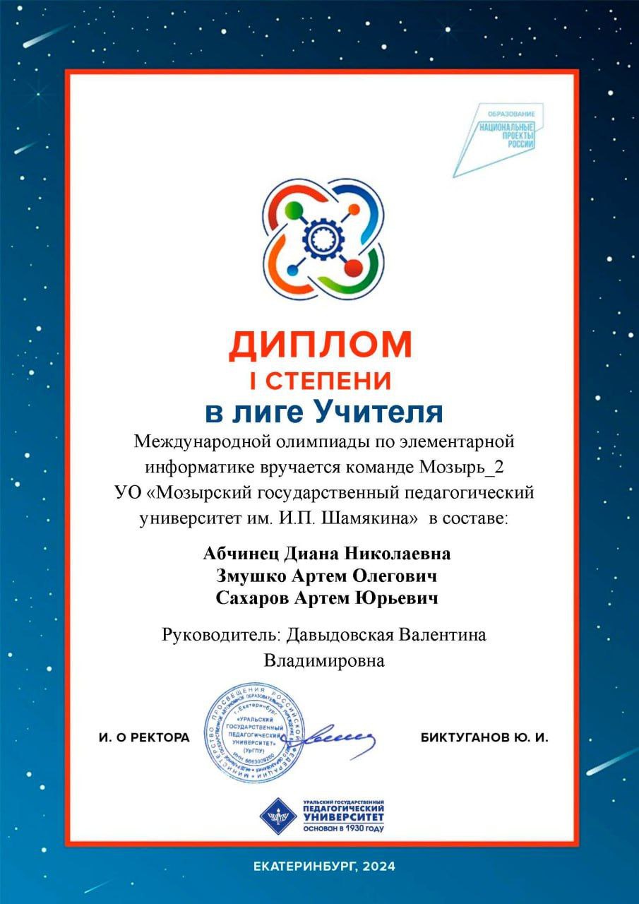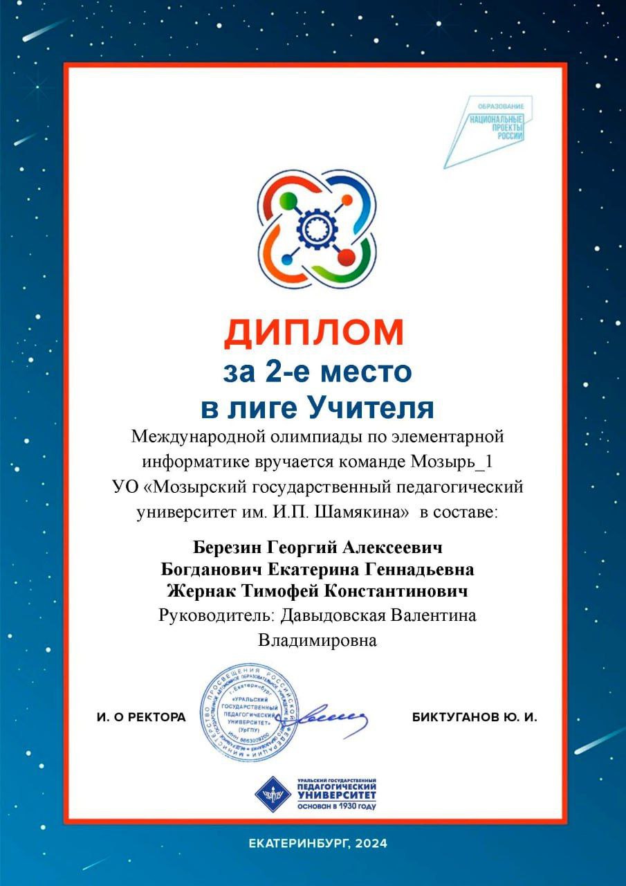 1-я команда: Березин Георгий (2 к., 1 гр.), Жернак Тимофей (2 к., 1 гр.), Богданович Екатерина (2 к., 1 гр.);