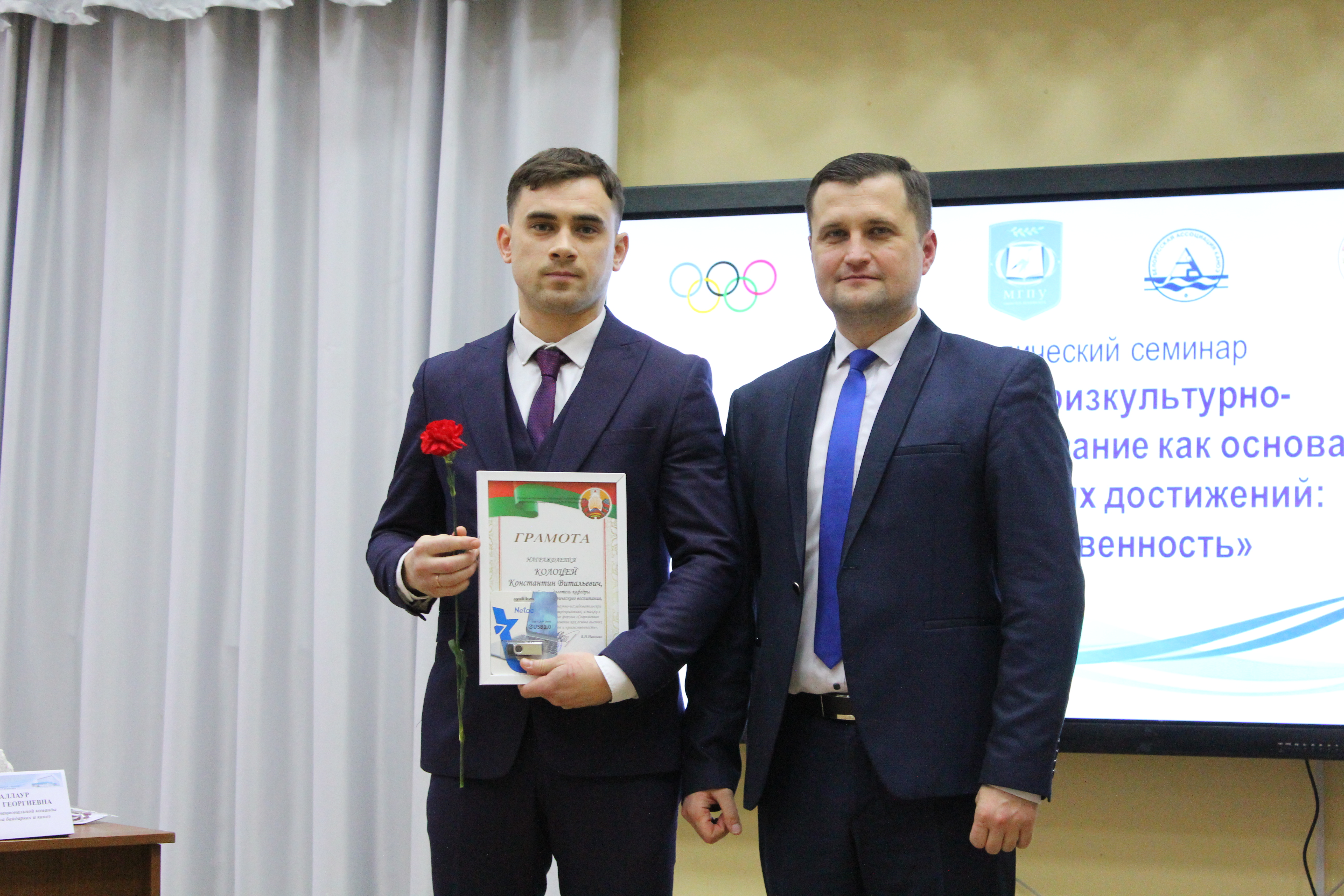 В ходе семинара проходило вручение грамот и чествование студентов и выпускников университета за участие в республиканских и международных соревнованиях по гребле на байдарках и каноэ в 2024 году от Министерства спорта и туризма Республики Беларусь, учреждения «Республиканский центр олимпийской подготовки по гребным видам спорта, общественного объединения «Белорусская Ассоциация Каноэ», управления спорта и туризма Гомельского облисполкома, УО МГПУ им. И.П.Шамякина, профсоюзная организация университета.