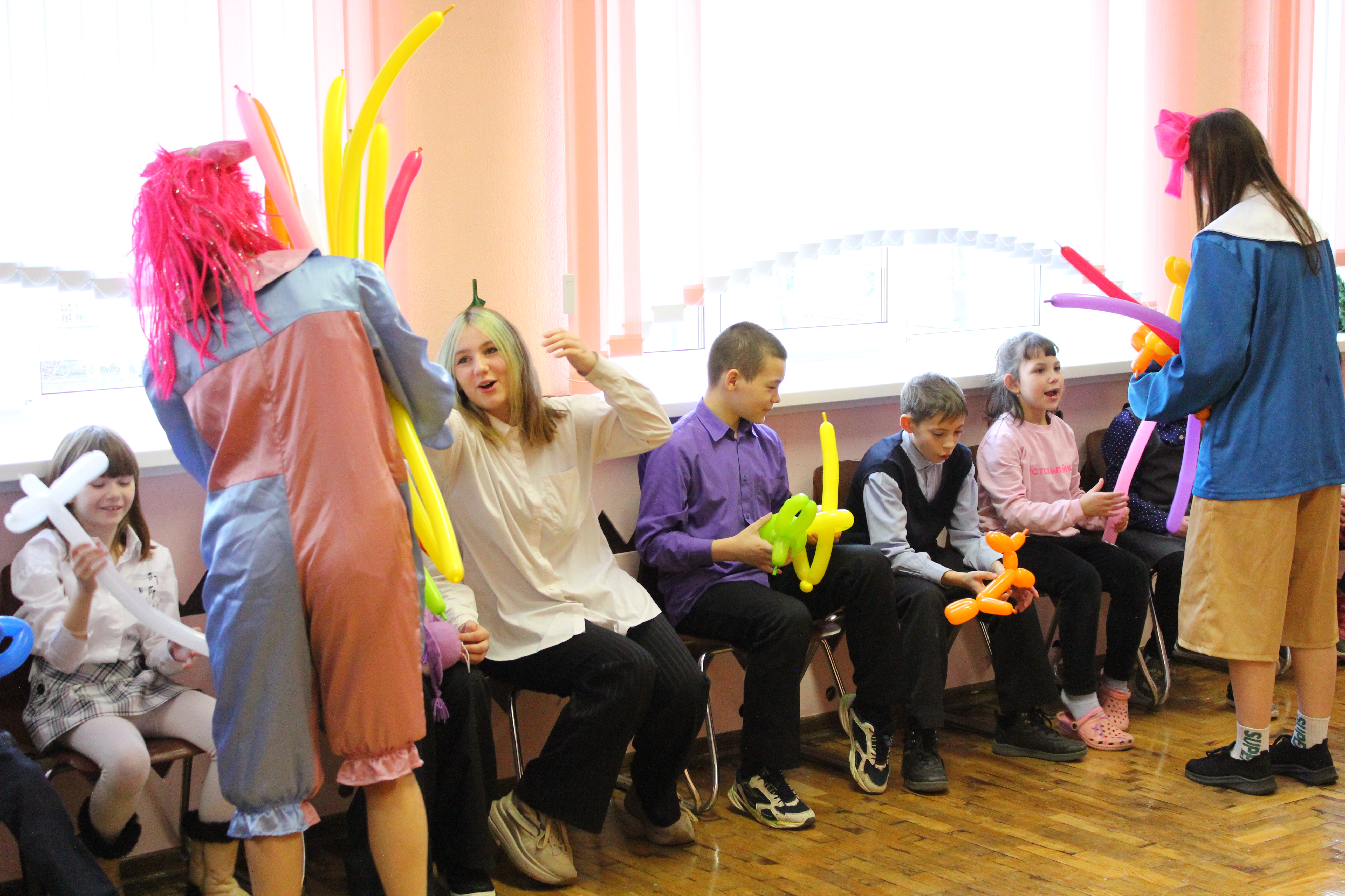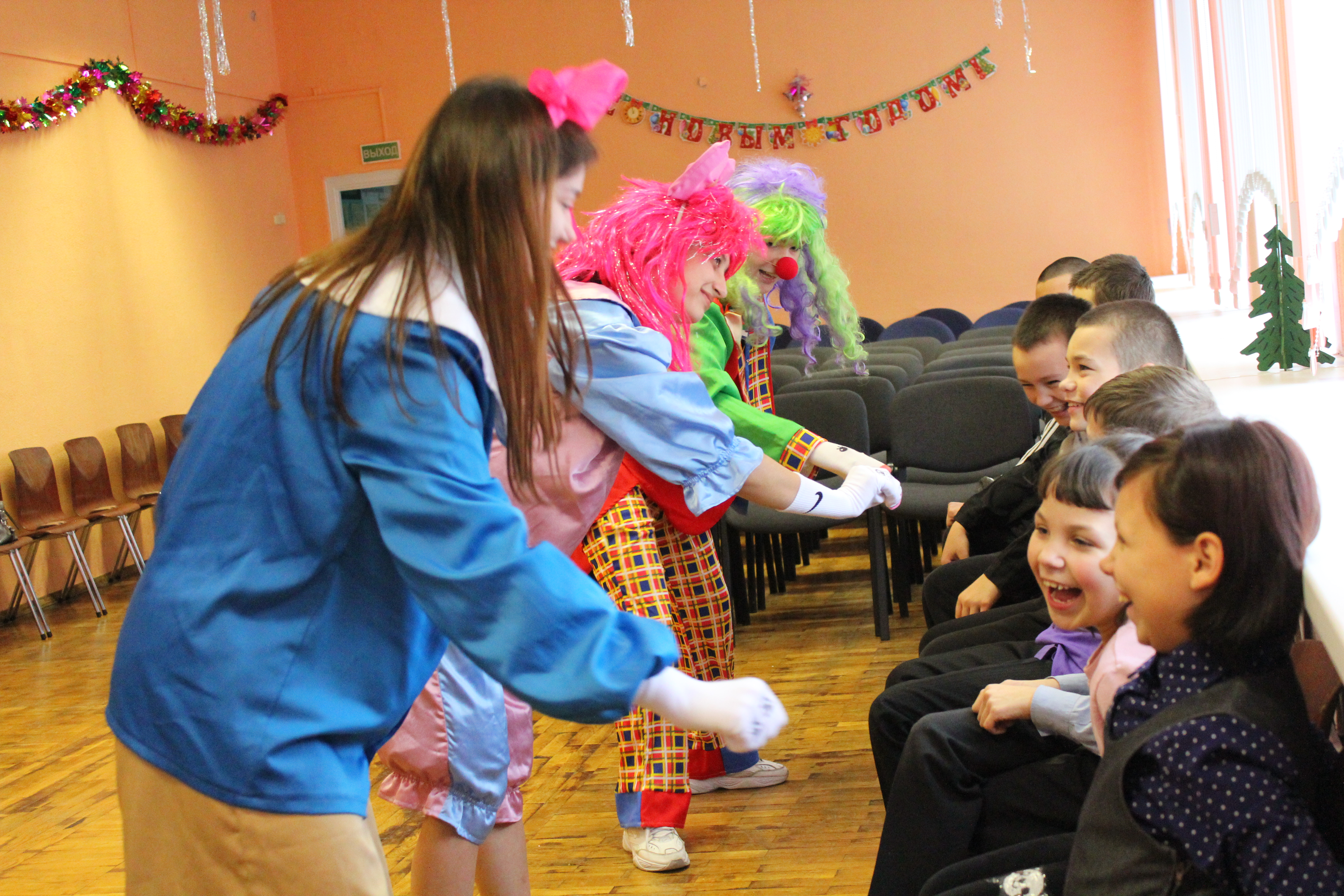 Студенты-волонтеры факультета физической культуры подготовили праздничную развлекательную и юмористическую программу «Чудеса вокруг нас», где главными героями были воспитанники образовательного учреждения. Веселые клоуны Кнопа, Марфуша и Дуся, в роли которых выступили активисты факультета Алина Чиженок, Дарья Малина и Дарья Зновец, организовали ребятам настоящий праздник.