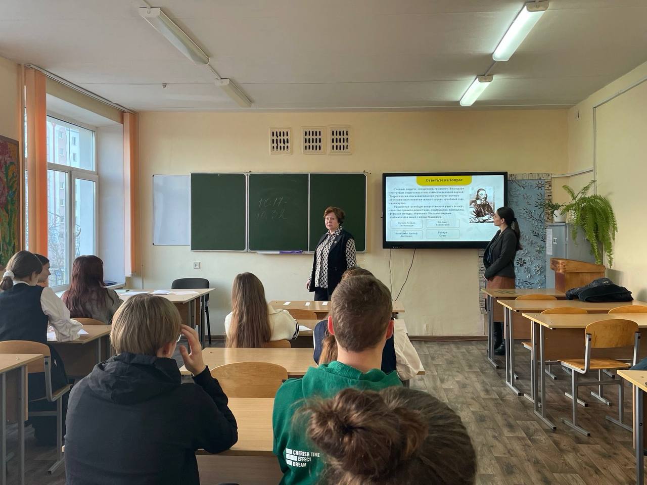 Встреча началась с интерактивной игры-разминки «Алфавит», в процессе которой школьники называли поочередно на каждую букву алфавита слова, ассоциирующиеся со школьной жизнью. Далее учащимся было предложено в письменной форме выполнить задания педагогических тестов по вопросам теории образования, а затем по персоналиям известных ученых-педагогов.