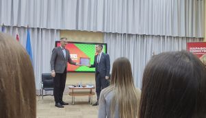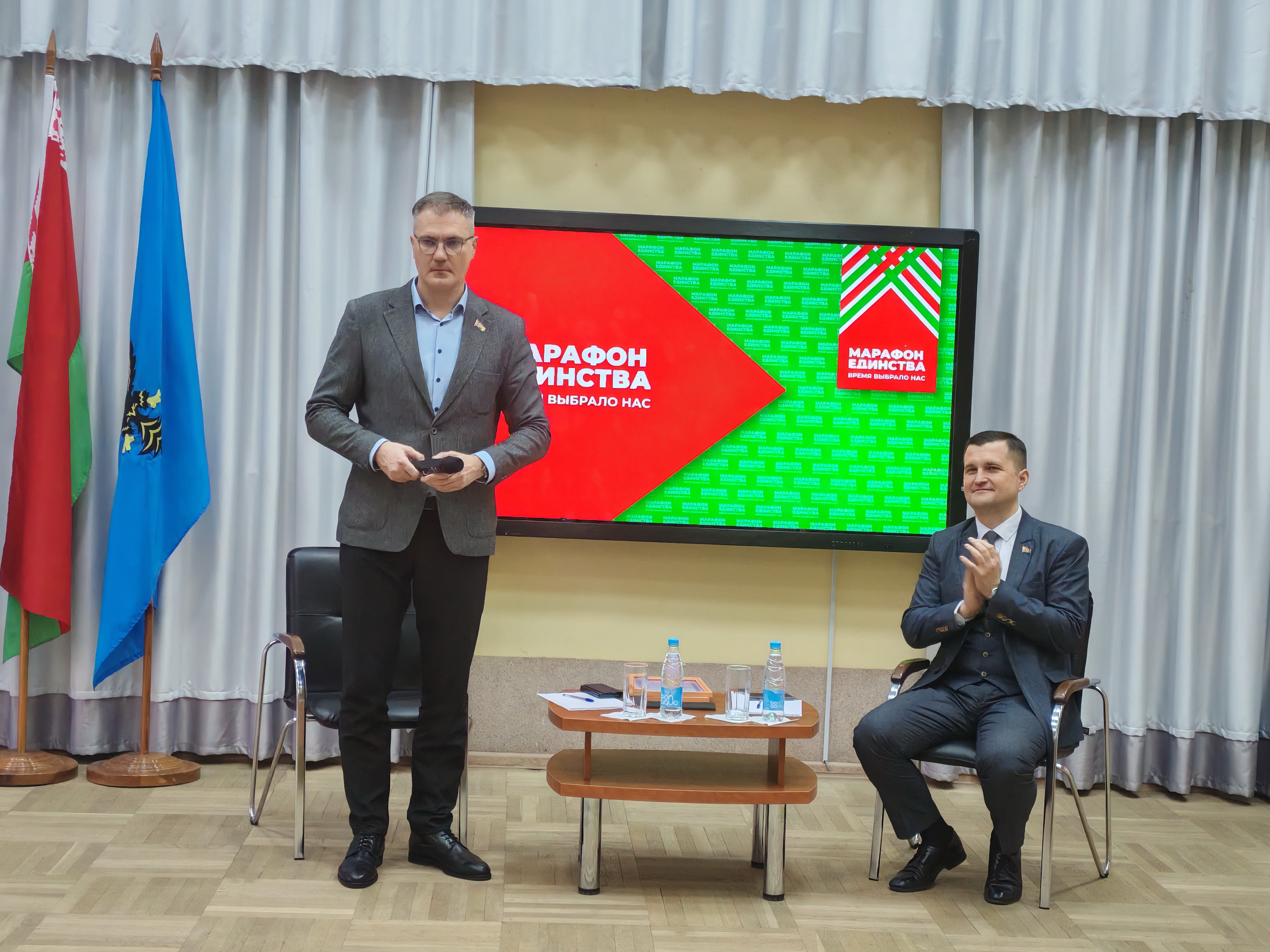 На встрече с генеральным директором Национальной библиотеки Беларуси Вадимом Гигиным студенты и преподаватели факультета поговорили о главных достижениях прошедшего 30-летия. «Мы перечисляем наши достижения в сельском хозяйстве, в образовании, в других отраслях. Да, все это так. Но мне кажется главным, что за это время мы построили Беларусь той, какой она есть. Это наше самое главное достижение за 30 лет», – озвучил свое видение генеральный директор Национальной библиотеки Беларуси. Затронули вопросы о безопасности нашей страны, которую получили благодаря Союзному государству и благодаря политике Президента. «У нас хватает сил обеспечить безопасность. Но самое главное, что мы опираемся действительно на единство народа в этом плане», – подчеркнул Вадим Гигин.