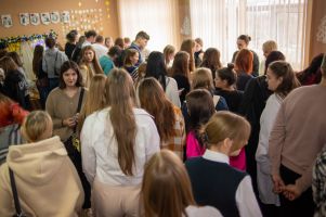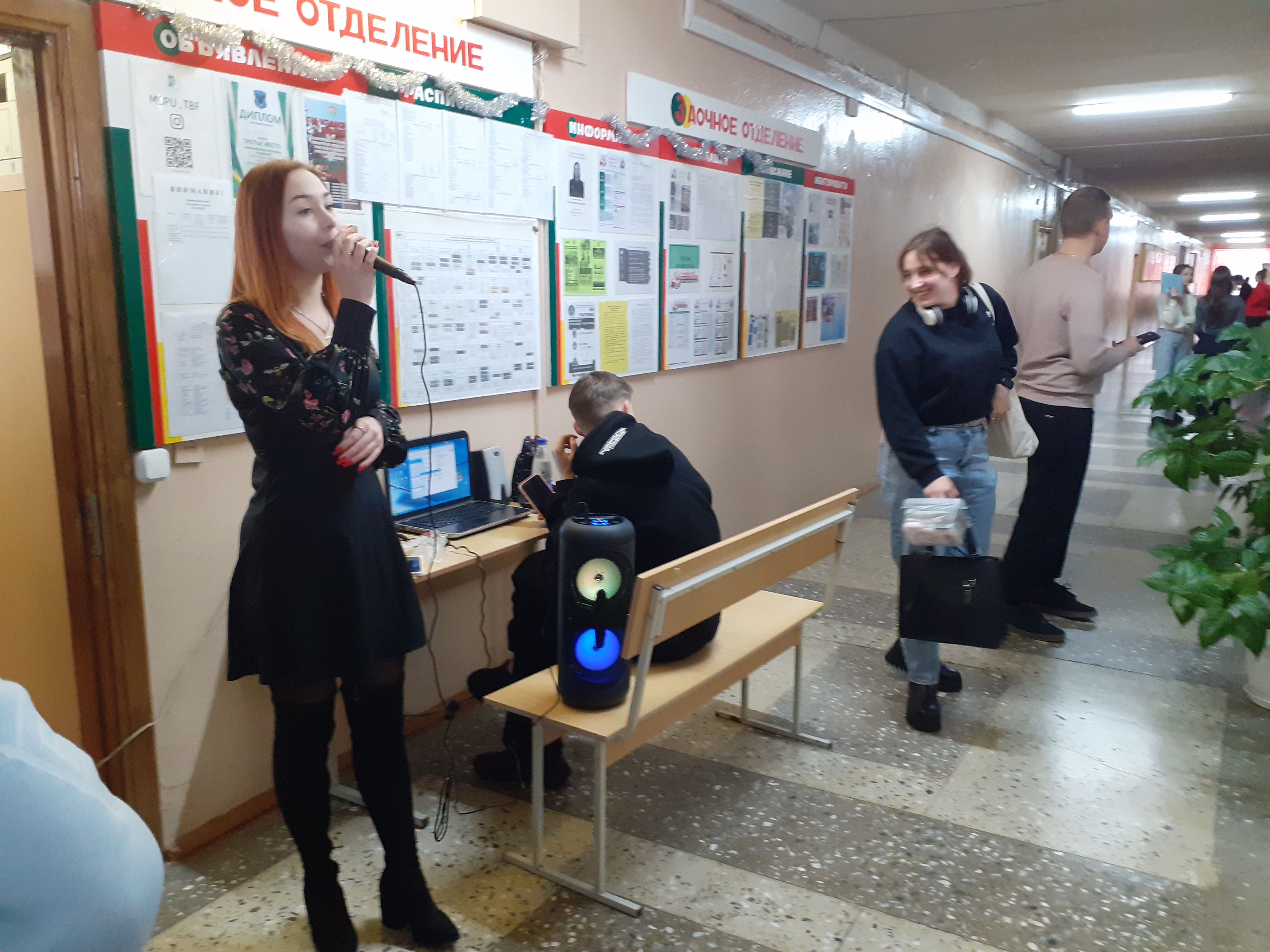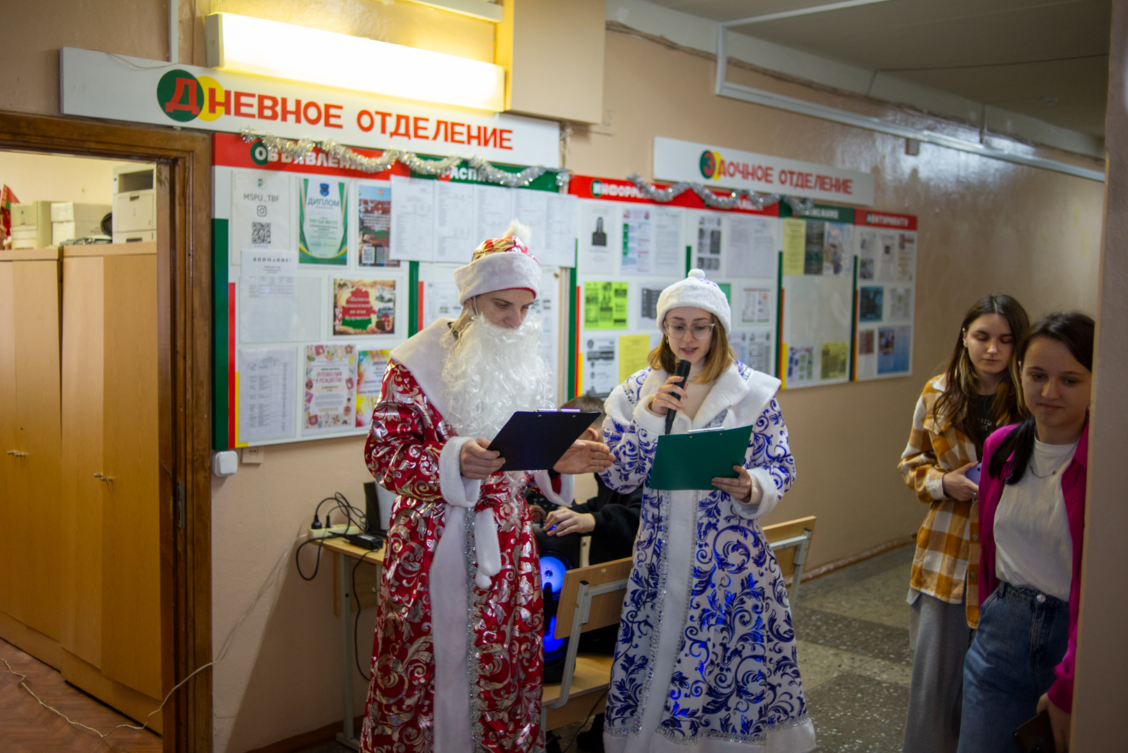 Гостей встречали Дед Мороз и Снегурочка. Студенты 2 курса Ю.Попко и В.Кохненко подготовили праздничный концерт и порадовали всех присутствующих своим вокальным мастерством.