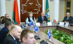 Председатель Гомельской областной организации Белорусского профессионального союза работников образования и науки Ж.А.Жданович рассказала о развитии социального партнерства в высших учебных заведениях Гомельской области и институте механики полимерных систем им. В.А.Белого НАН Беларуси.