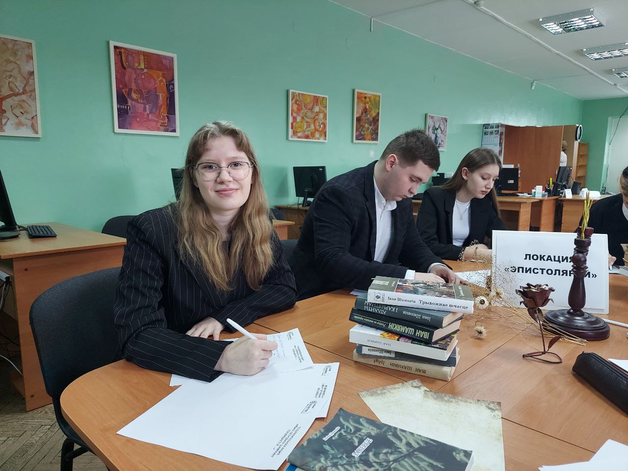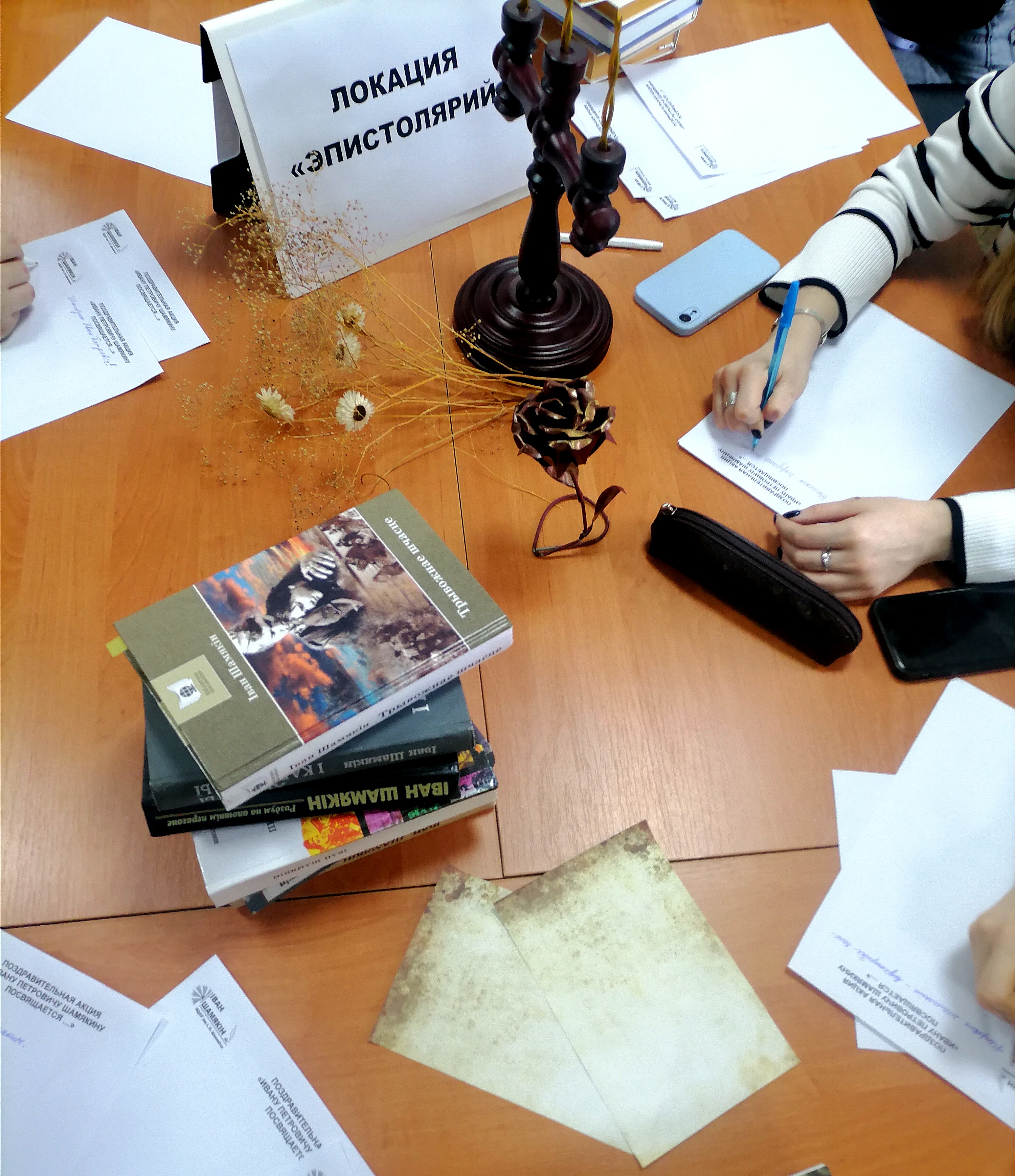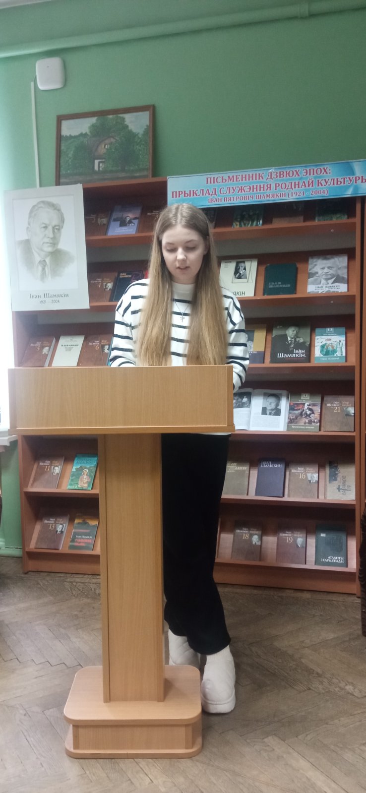 На тематической выставке «Пісьменнік дзвюх эпох: прыклад служэння роднай культуры. Іван Пятровіч Шамякін (1921 – 2004)» были представлены книги И.П. Шамякина, мемуары, воспоминания современников, дневники писателя. Студенты филологического факультета в рамках локации «Эпистолярий» написали письма литературным героям Ивана Петровича, подготовили Благодарность самому писателю.