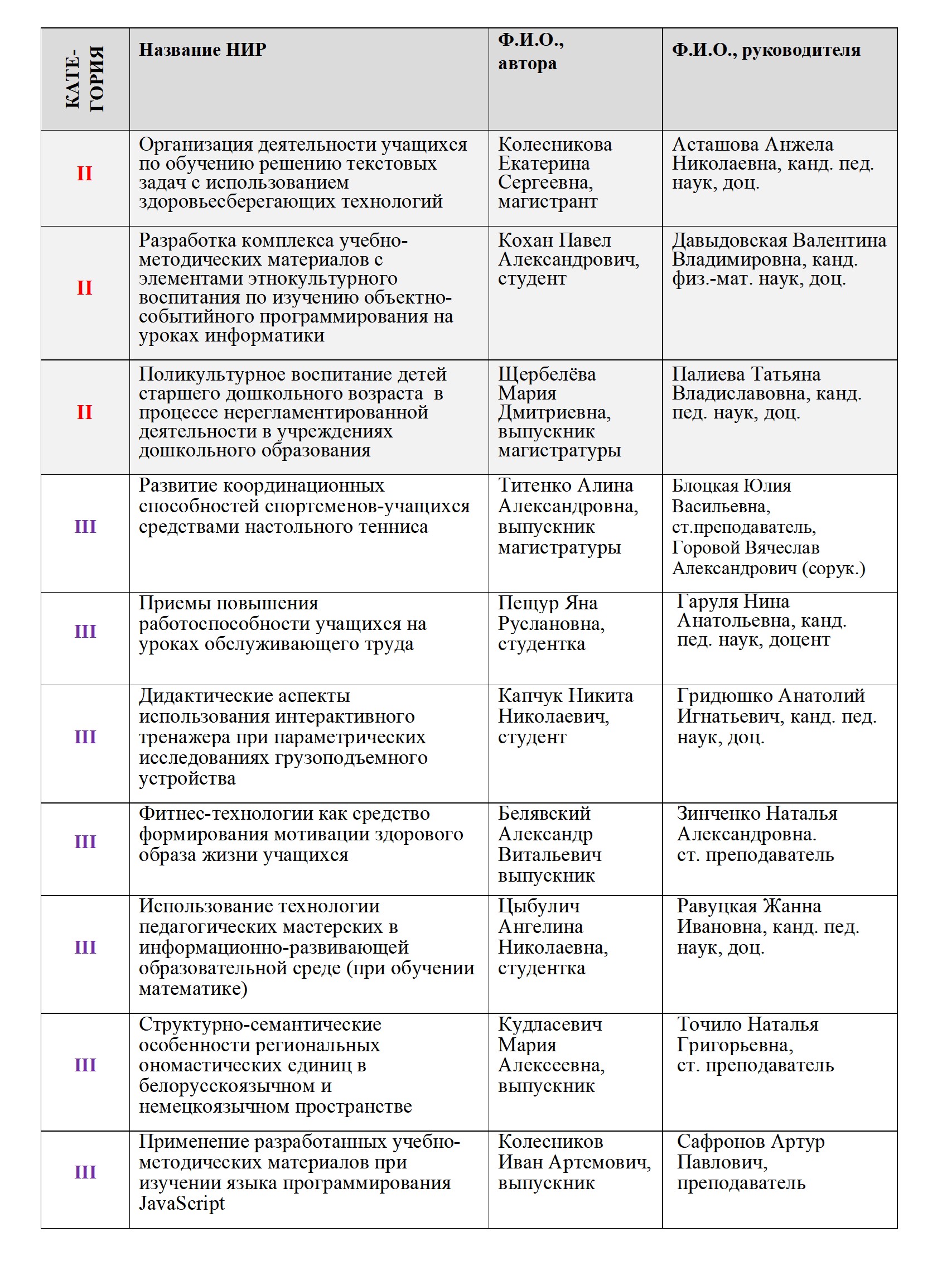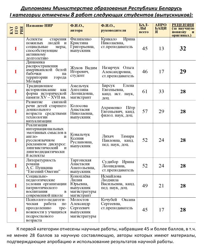ИТОГИ XXXI РЕСПУБЛИКАНСКОГО КОНКУРСА НАУЧНЫХ РАБОТ СТУДЕНТОВ
