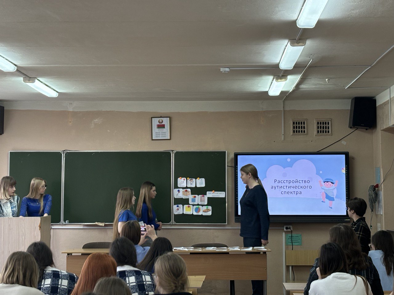 На тематическом мероприятии студенты-логопеды 2-ого курса рассказали о расстройствах аутистического спектра, методиках помогающих адаптироваться людям с РАС в обществе и провели интерактивные эксперименты.