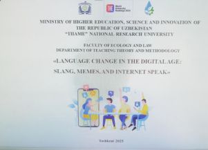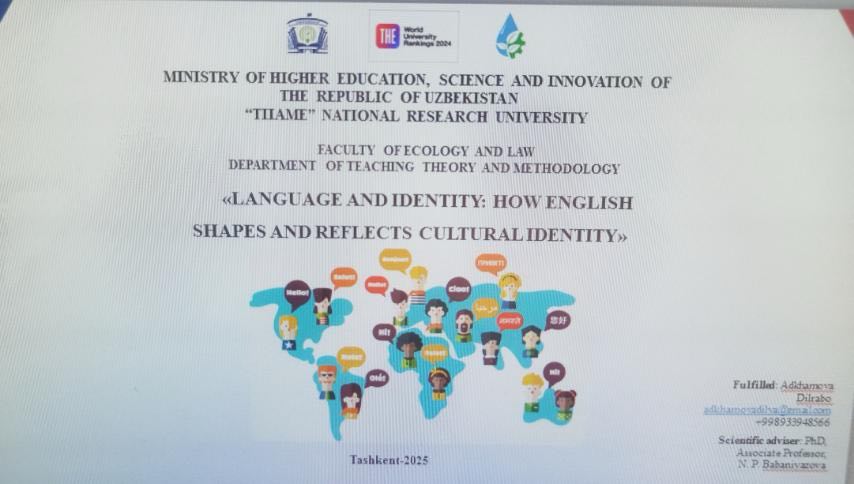 Студенты из ТИИМСХ Адхамова Дильрабо и Одилова Фарангиз представили доклады: «Language and identity: how english shapes and reflects cultural identity», «Language change in the digital age: slang, memes, and internet speak».