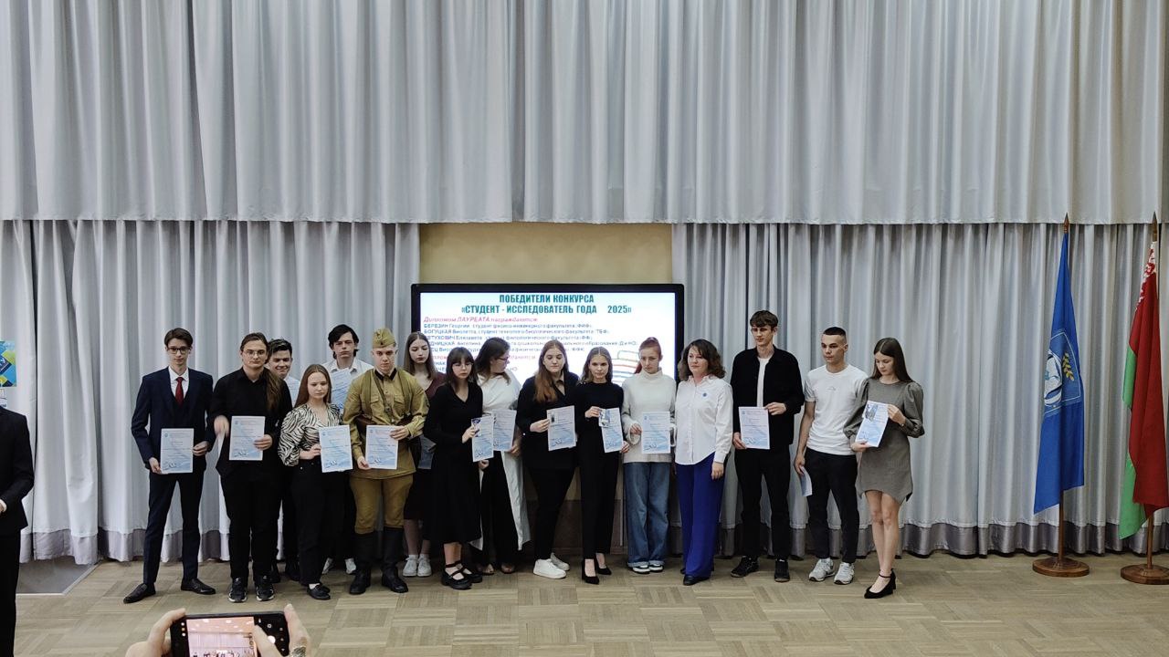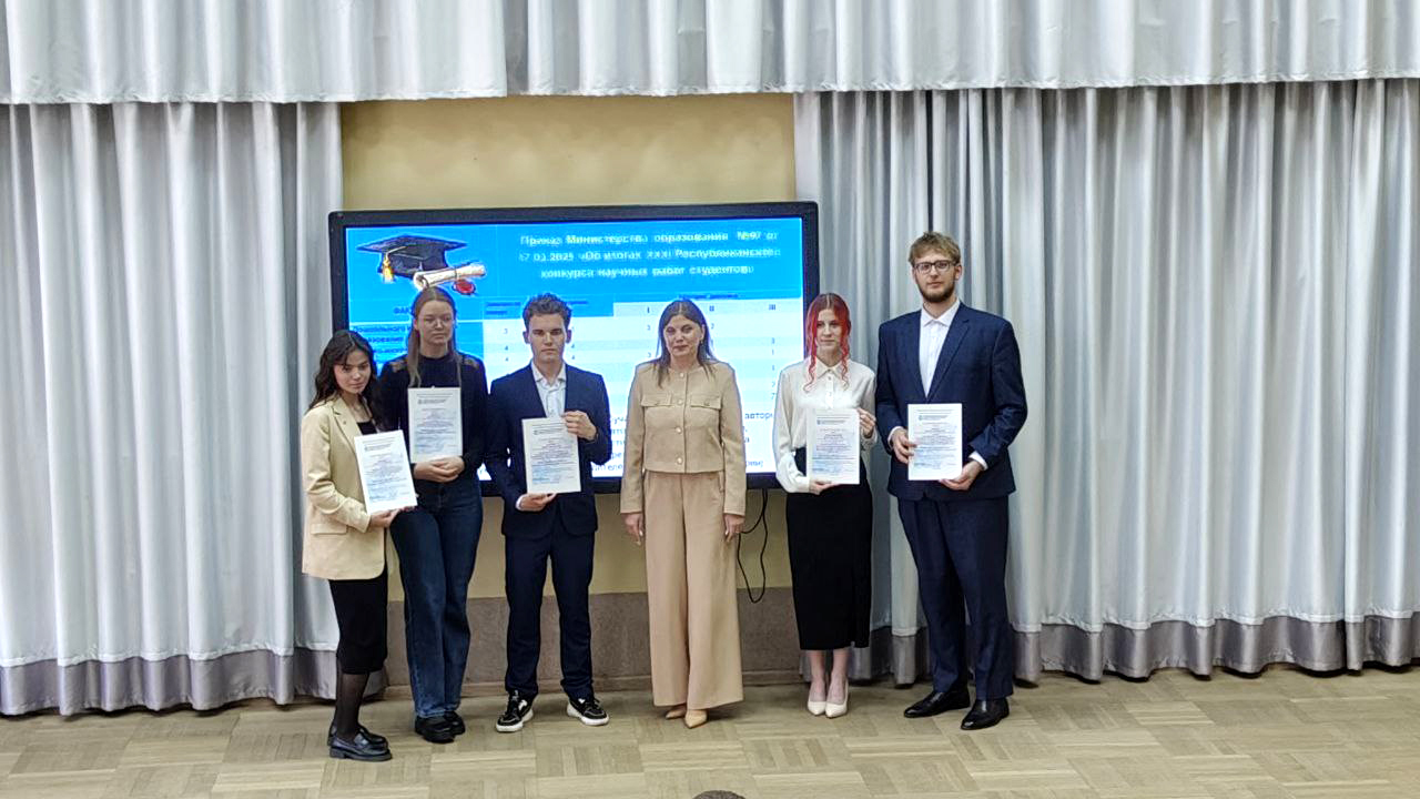 В торжественной обстановке были вручены сертификаты победителям XXXI Республиканского конкурса научных работ студентов: Кохан П.А. (диплом II категории, руководитель Давыдовская В.В.), Цыбулич А.Н. (диплом III категории, руководитель Равуцкая Ж.И.), Капчук Н.Н. (диплом III категории, руководитель Гридюшко А.И.).