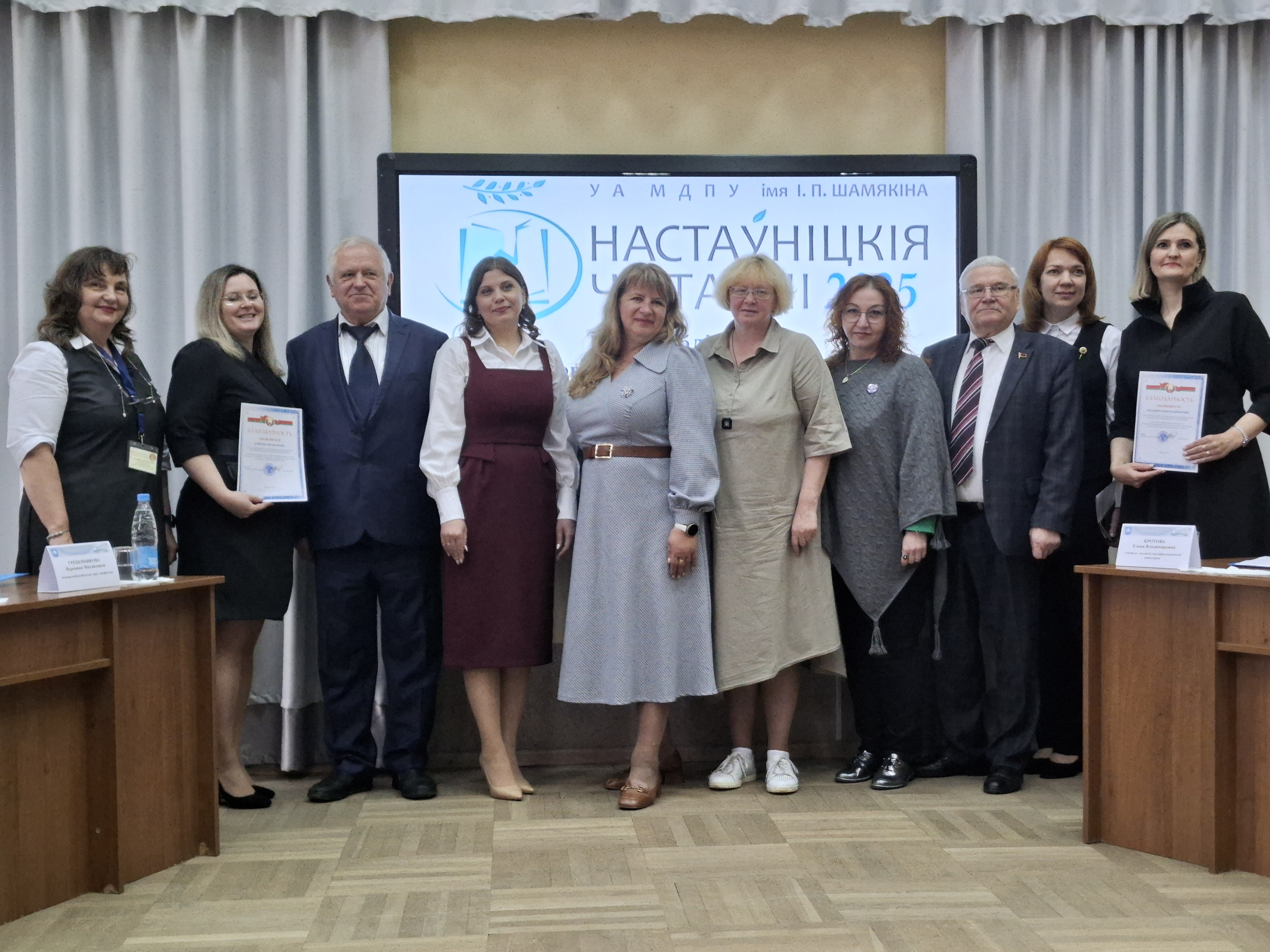В.М.Гребенникова и М.Л.Шер приняли участие в работе пленарного заседания научно-практической конференции «Настаўніцкія чытанні». Доклад «Ценностно-мотивационные компоненты в структуре профессиональной направленности будущих педагогов-психологов» вызвал больший интерес и был высоко оценен участниками конференции.