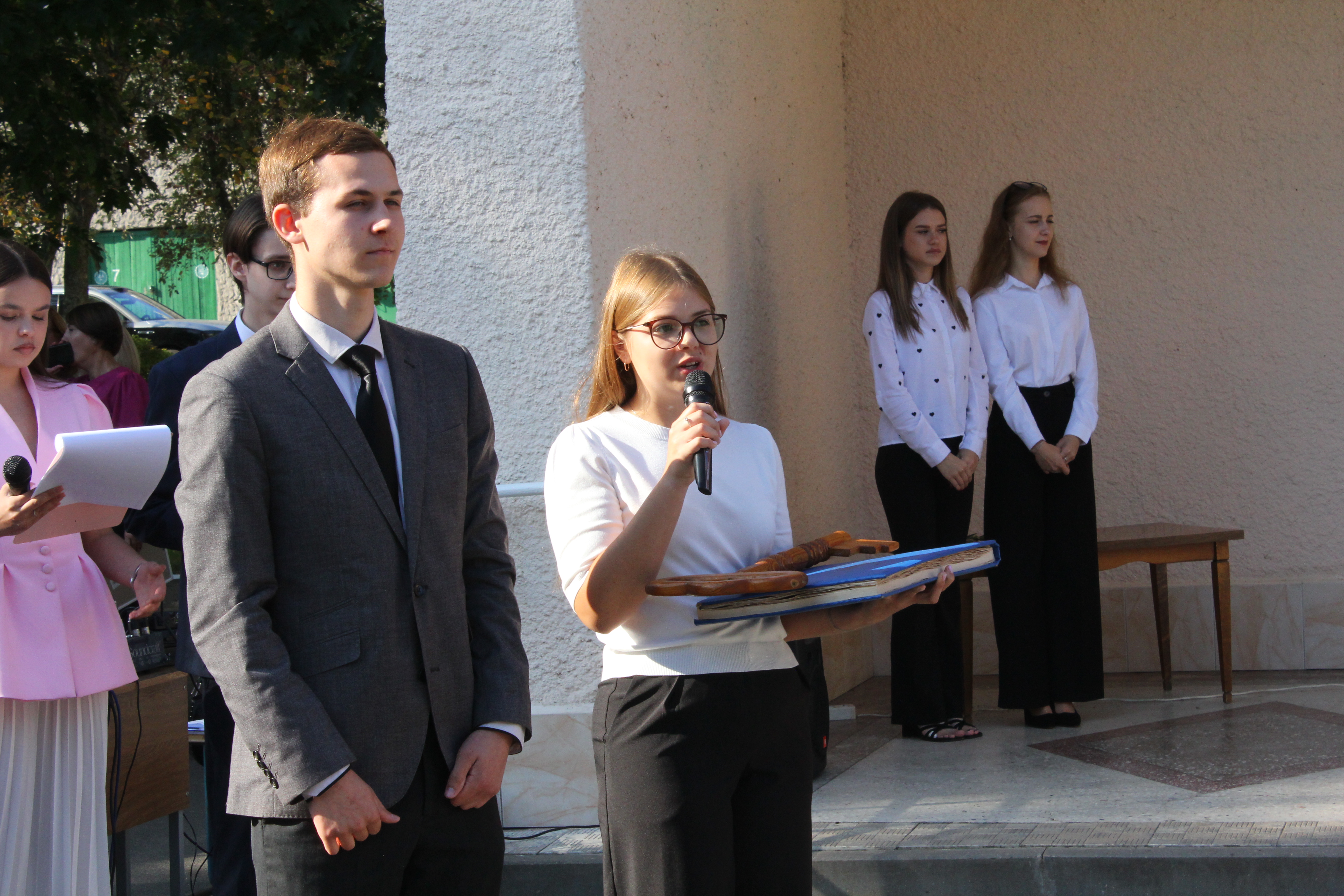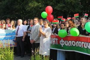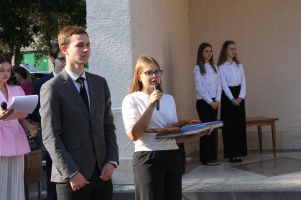По традиции первокурсникам были вручены символы студенческой жизни: Ключ знаний и Студенческий билет. Студентка факультета дошкольного и начального образования Полина Кашевич, набравшая рекордные 344 баллов по итогам приемной кампании, приняла эти символы насыщенной студенческой жизни из рук выпускника университета Михаила Лядвика.