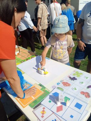 – на локации «Научная гостиная», где Любовь Николаевна Полын высткупила с научно-популярной лекцией «Безэкранное программирование с роботом Matatalab».