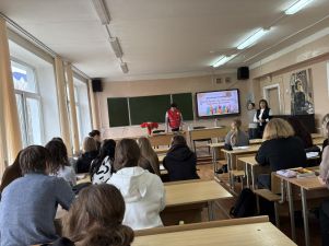 Опытом факультета поделилась лидер волонтерского движения, студентка 4 курса Александра Герасёва. Она представила обзор ключевых акций и проектов прошлого учебного года.