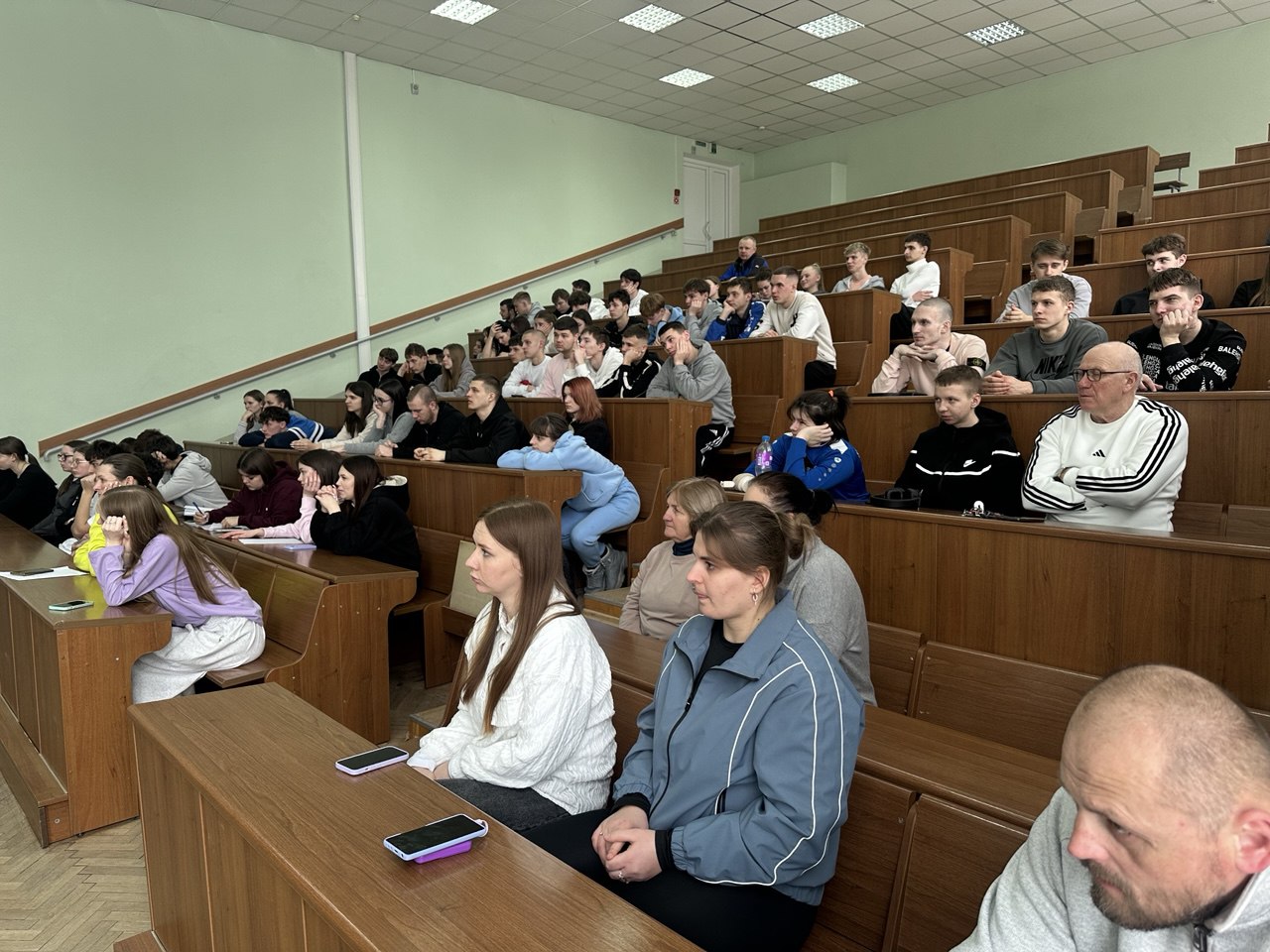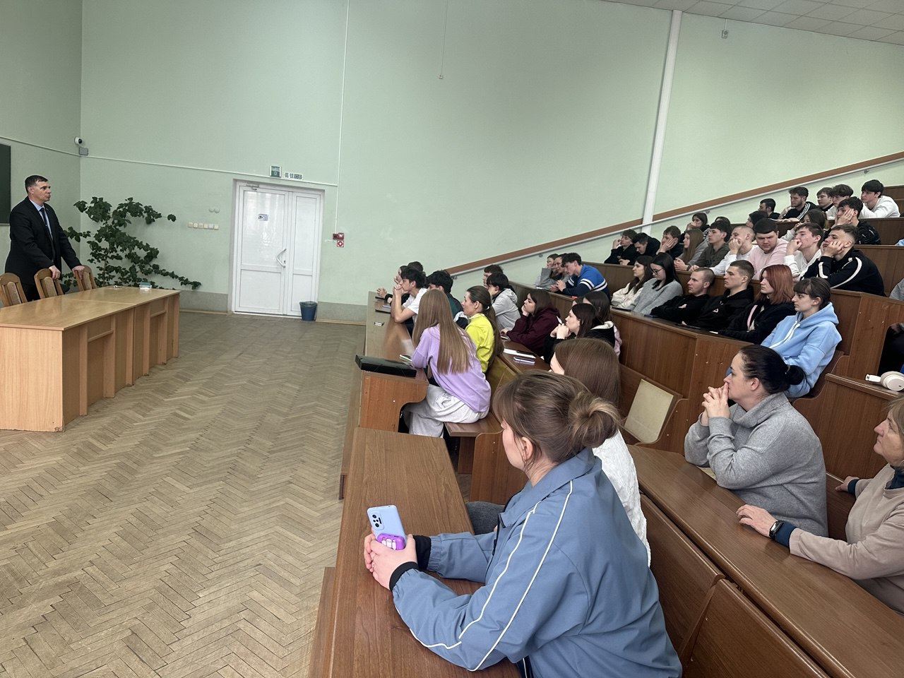 После просмотра перед собравшимися выступил проректор по безопасности, режиму и кадрам М.Н. Лешкевич. Он обратился к студентам с важным призывом: тщательно обдумывать свои действия, не поддаваться соблазну легкого заработка и всегда помнить о возможных последствиях.