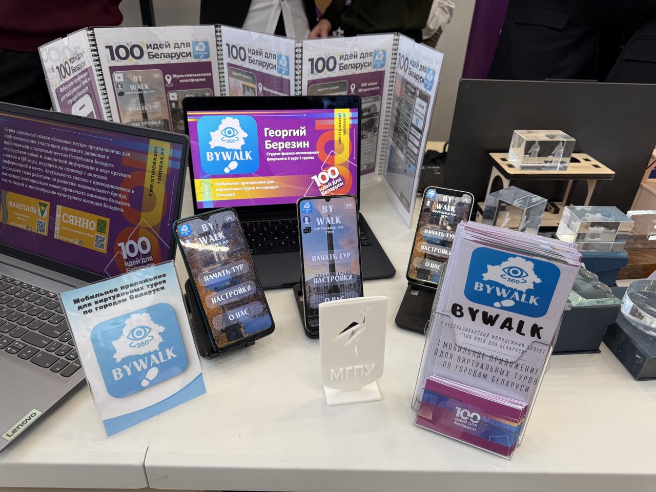 А студент 3 курса 1 группы Георгий Березин презентовал мобильное приложение «BYWalk» для осуществления виртуальных 360-туров по городам Республики Беларусь и составления индивидуальных туристических маршрутов. Созданное им мобильное приложение представляет собой современный цифровой инструмент, полезный для развития сферы туризма, образования и культурного просвещения.