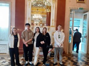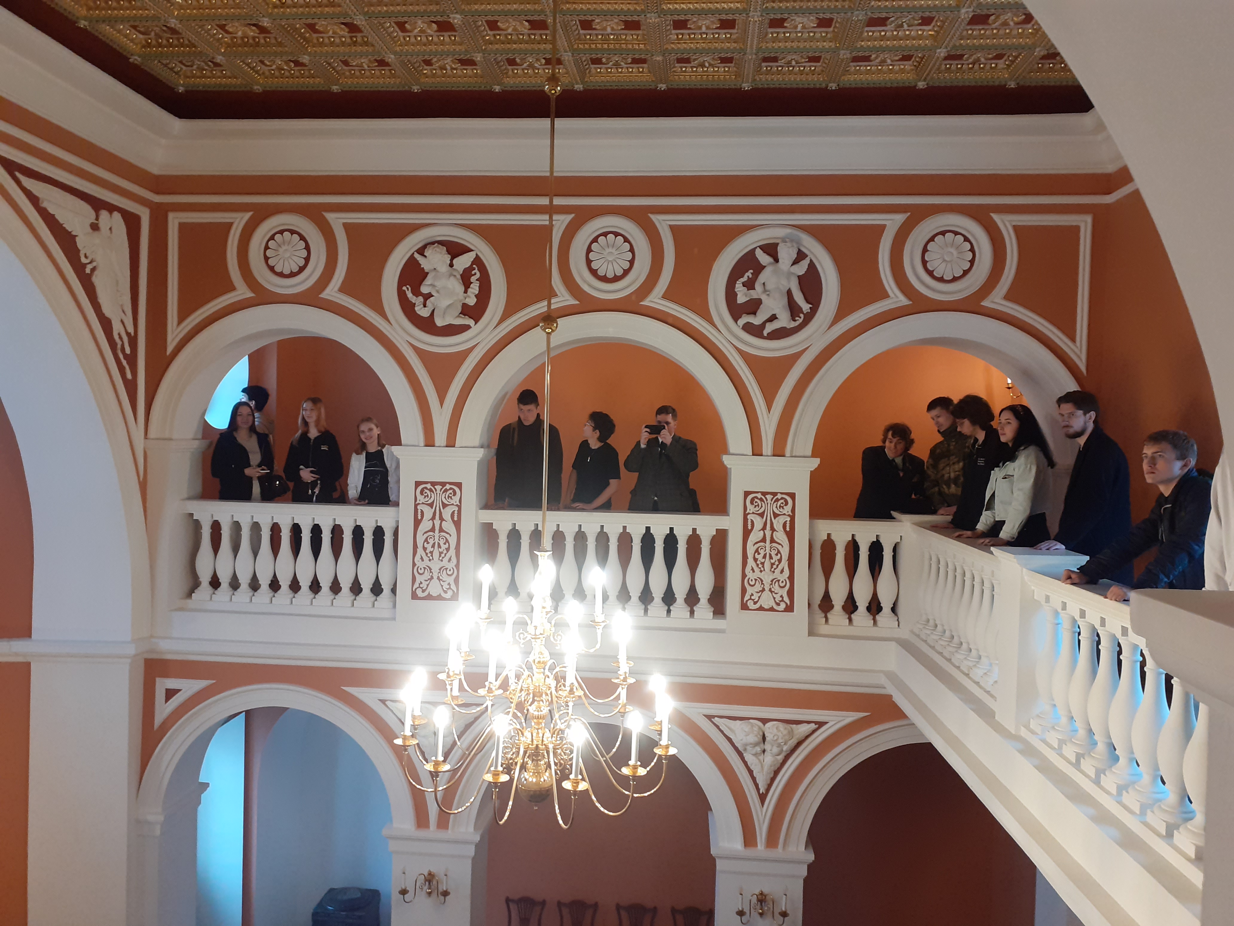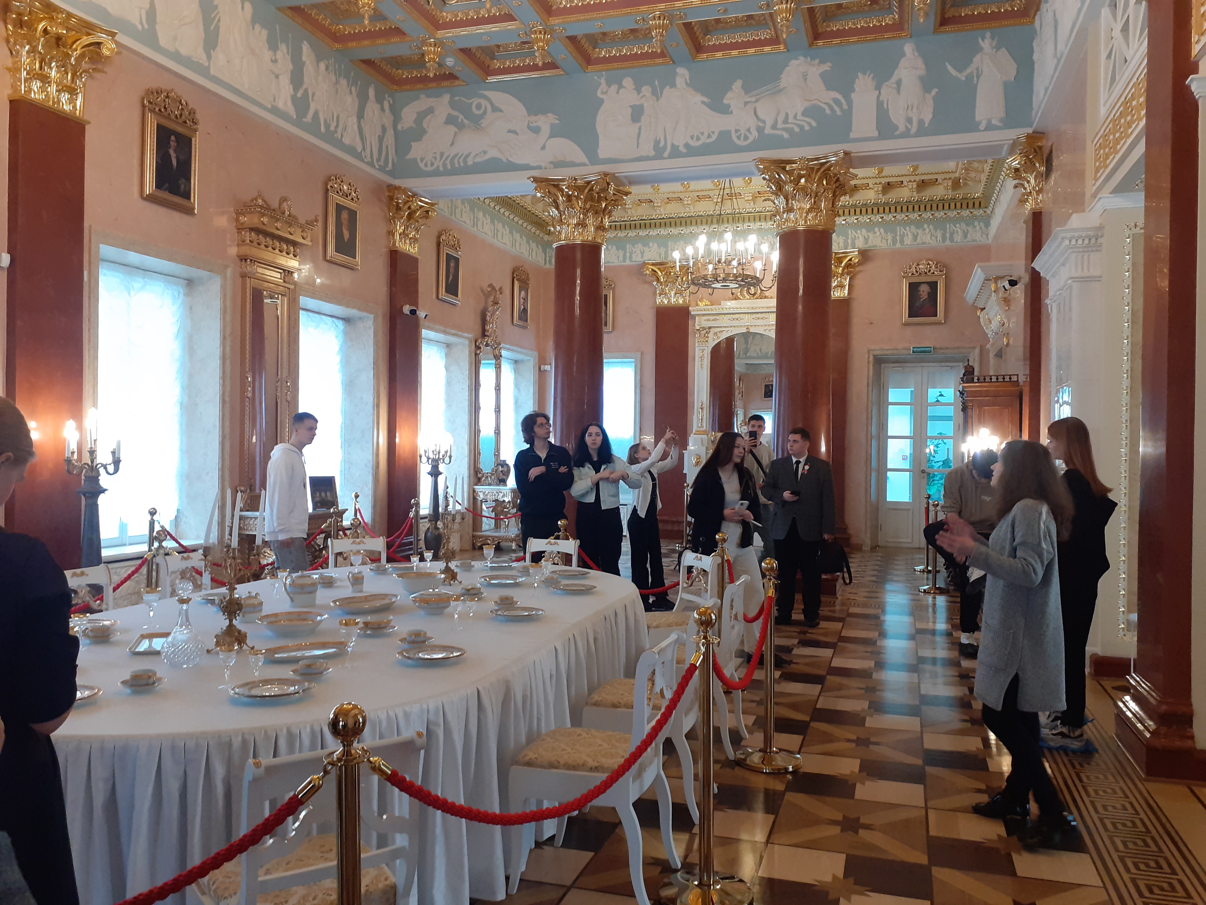 Следующей точкой маршрута стал дворцово-парковый ансамбль в агрогородке Жиличи, который отнесен к первой категории Государственного списка памятников истории и культуры Беларуси. Интерьеры образца исторического эклектизма, древнегреческие орнаменты и образы дворца поразили студентов своей красотой и богатством. Уникальные для Беларуси и впечатляющие по декоративному убранству и сохранности потолки парадных залов дворца наиболее впечатлили студентов.