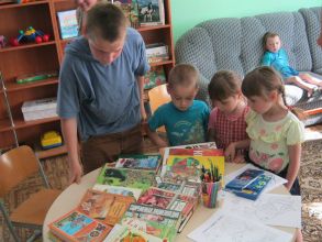 Проц Ольга и Проц Диана, студентки физико–математического факультета помогли детям окунуться в мир сказочных приключений, в мир чудес и волшебства: побеседовали о произведениях А.С. Пушкина, вспомнили любимые сказки и их героев, разгадали загадки. По окончанию мероприятия воспитанникам социально–педагогического центра подарили книги,  собранные студентами и преподавателями физико–математического факультета. От профкома студентов университета детям был вручен «сладкий сказочный подарок».