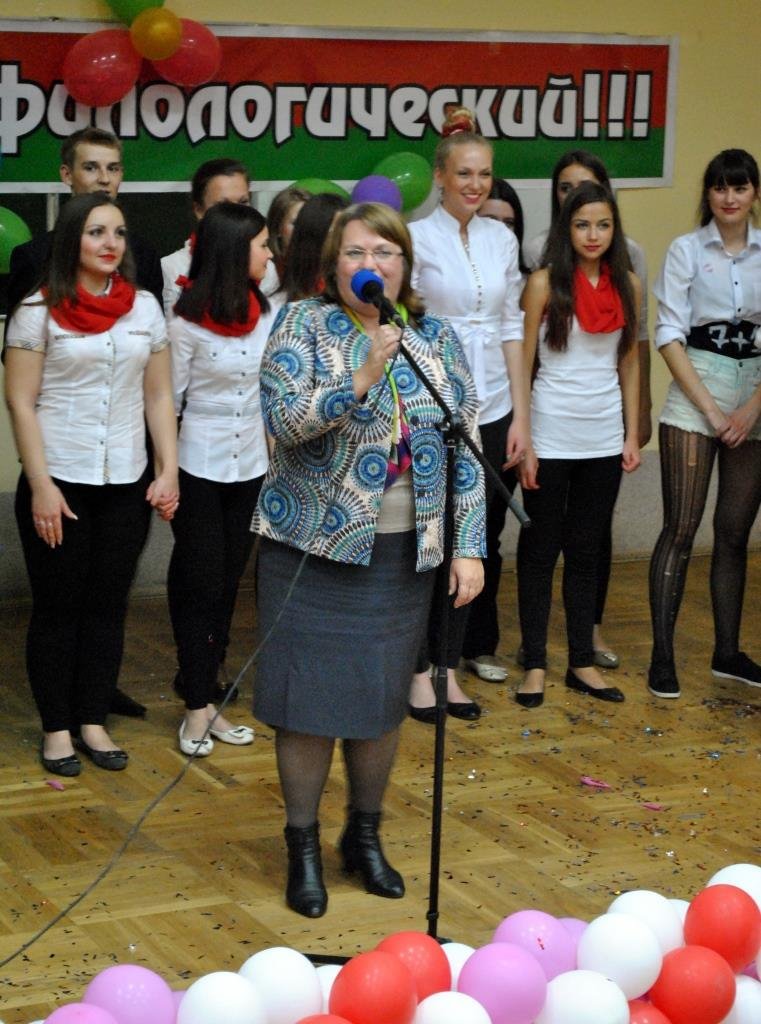 Фестиваль открыла декан филологического факультета Людмила Васильевна Исмайлова, которая, приветствуя первокурсников и всех собравшихся в зале, рассказала о факультете, его достижениях и перспективах развития, о сотрудничестве преподавателей и студентов, кафедр и учреждений образования в процессе формирования учителя.