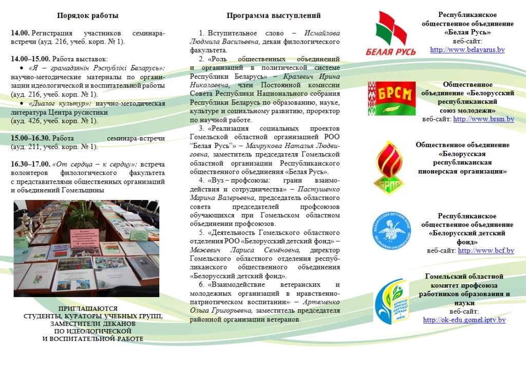 Филологический факультет приглашает на семинар-встречу с представителями общественных организаций и объединений Гомельщины