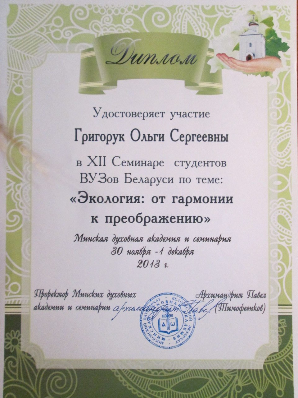 1 декабря 2013 года участники XII Семинара студентов Высших учебных заведений Беларуси молились на Божественной Литургии, после чего для них была проведена экскурсия по Жировичскому монастырю. Далее работа семинара продолжилась в секциях.