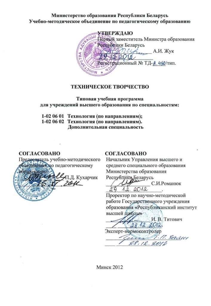 1. Техническое творчество: типовая учебная программа. – Введ. 29.12.2012., № ТД-А.450 / С.Я. Астрейко [и др.]. – Минск: РИВШ, 2013. –с. (в соавт. Гладкий С.Н., Жадик Н.П., Македонский А.Н.).