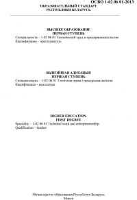 7. Образовательный стандарт ОСВО 1-06 02-2013 “Обслуживающий труд и предпринимательство”. – Введ. 30.08.2013., № 87 / С.Я. Астрейко, В.Н. Навныко, Е.В. Тихонова. – Минск: МО РБ, 2013. – 25 с.