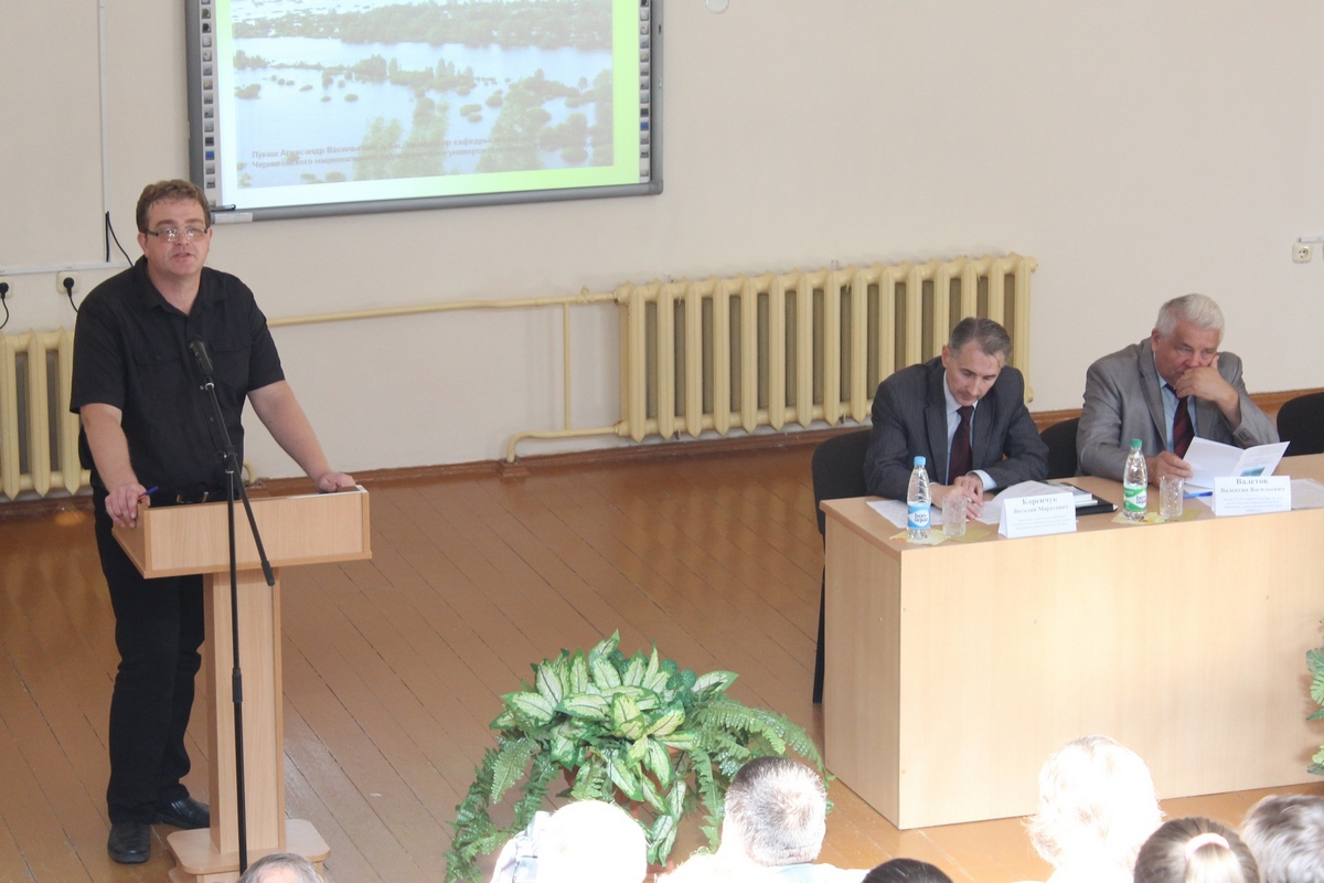 Профессор кафедры экологии и охраны природы Черниговского национального педагогического университета имени Т.Г. Шевченко, доктор биологических наук А.В. Лукаш представляет доклад о ботанических предпосылках создания Днепровского международного биосферного резервата