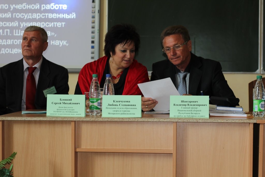 С большим интересом участники конференции восприняли выступление заслуженного тренера Республики Беларусь, главного тренера национальной команды по гребле на байдарках и каноэ Республики Беларусь В.В. Шантаровича. Владимир Владимирович отметил, что основу сборной команды Республики Беларусь по гребле на байдарках и каноэ составляют спортсмены Мозырщины и рассказал об особенностях подготовки гребцов высокой квалификации на байдарках и каноэ в системе ДЮСШ-ВУЗ.