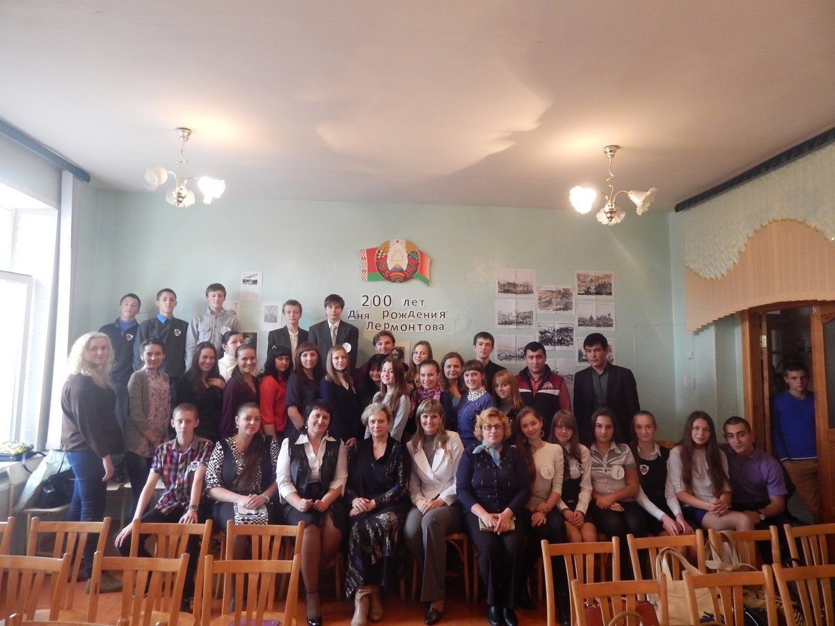 15 октября 2014 года свое читательское видение лермонтовской поэзии представили школьники ОШ №2 г. Калинковичи на литературном турнире «К нам Лермонтов сходит, презрев времена…» Жанровая форма мероприятия (устный журнал) позволила гармонично соединить несколько видов работы: интеллектуально насыщенную презентацию о жизни и творчестве поэта с творческими конкурсами (литературная викторина, экспресс-тест, текстологический комментарий и др.). Особенно удался участникам последний этап состязания: обе команды «Пророки» и «Демон» презентовали стилизацию-эксперимент поэтических отрывков М.Ю. Лермонтова в жанре сатирической комедии и трагедии.