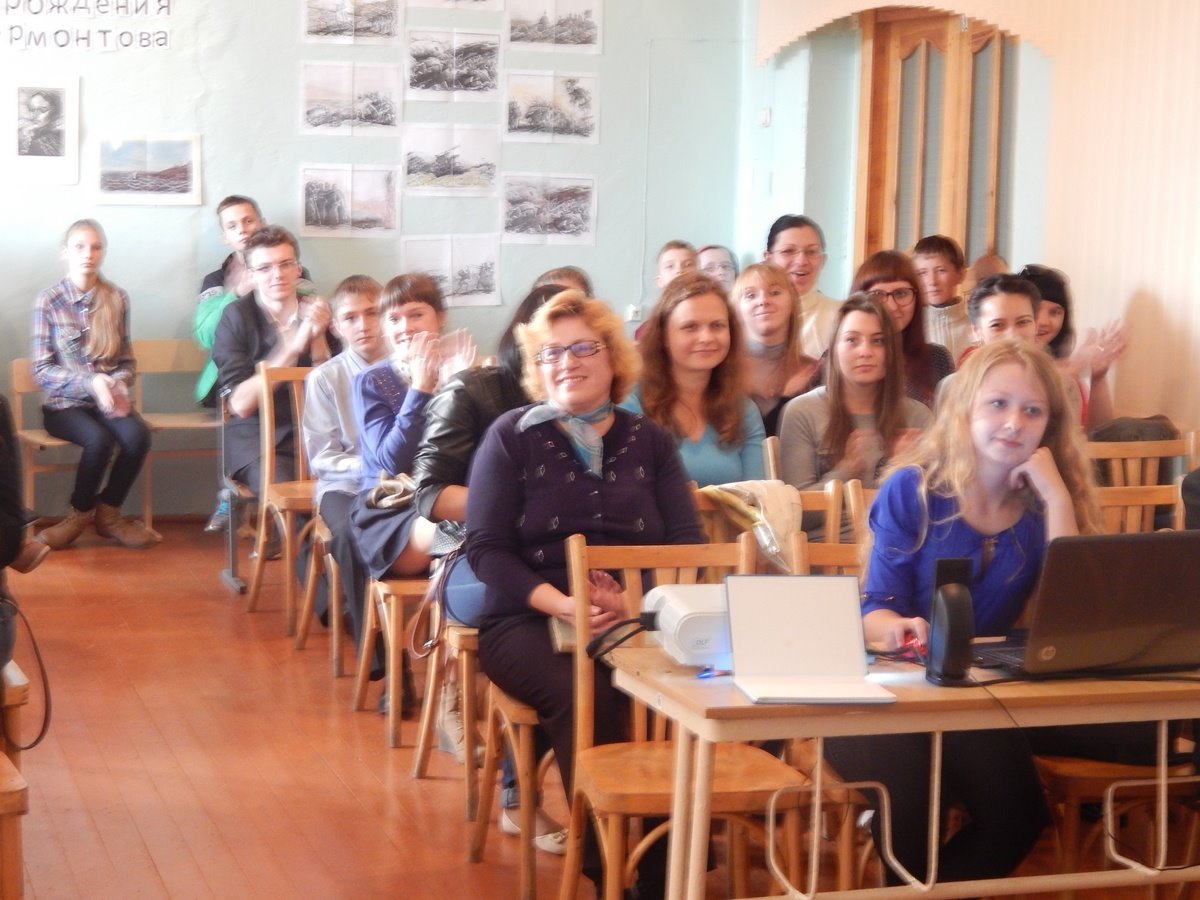 Яркими были также выступления чтецов. Свою интерпретацию «Бородино» продемонстрировала Лиза Е., ученица пятого класса, которая по-детски, непосредственно продекламировала это стихотворение. Удачным дополнением устного журнала стала музыка. Романсы на стихи М.Ю. Лермонтова, мелодичные, задушевные, были исполнены различными певцами. Поэтический образ «одинокого паруса» («под ним струя светлей лазури, над ним луч солнца золотой…») моделировался на экране с помощью современных технологий. Он плавно плыл по волнам памяти самого поэта и так же плавно со звуками мелодии вливался в души зрителей. Здесь каждый понимал, что за грустью Лермонтова кроется необычайная романтичность, в которой за скромностью и сдержанностью строк прорывался дерзкий вызов всему окружающему миру.