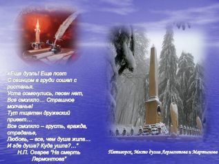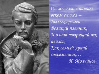 М.Ю. Лермонтов вошёл в историю русской литературы как достойный преемник А.С. Пушкина. Д. Мережковский писал: «Пушкин – дневное, Лермонтов – ночное светило русской поэзии, вся она между ними колеблется, как между двумя полюсами – созерцанием и действием».