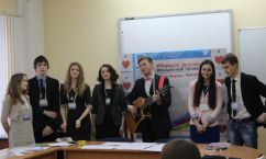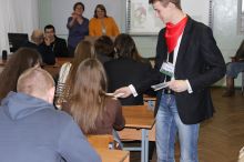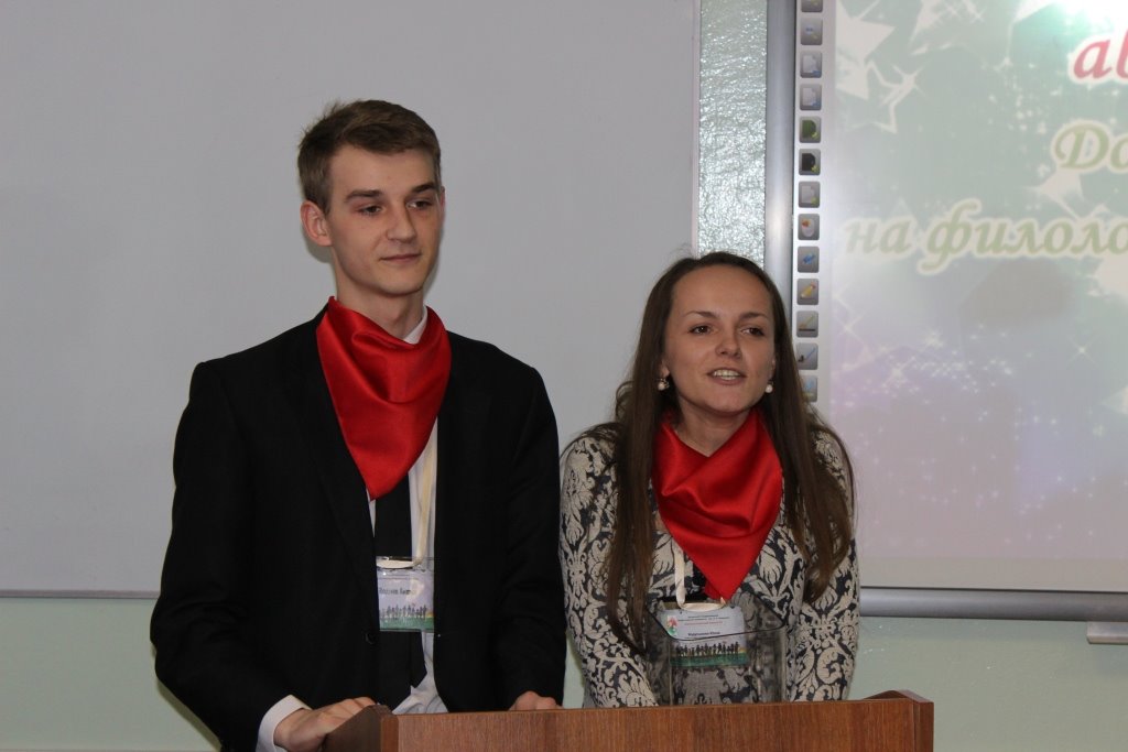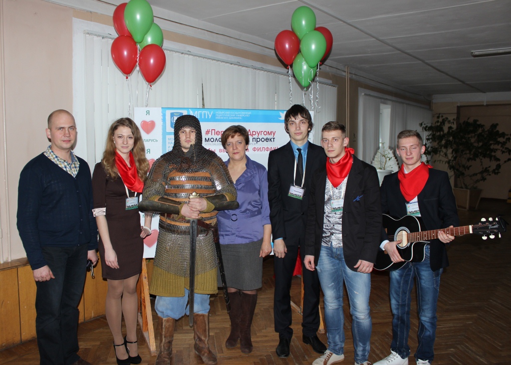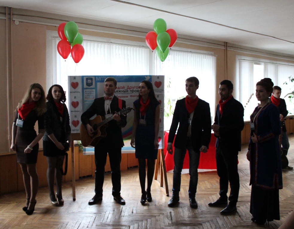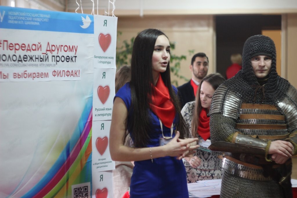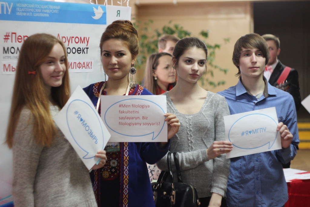 Студенты факультета Латышев К., Синицкая И., Родионов Р., Карпова М., Воднев А., Синицкая Т., Ходунькова Ю., Ныязова Э., Халыев Б., Шевнин Н. представили творческий проект «Передай другому: мы выбираем филфак!».