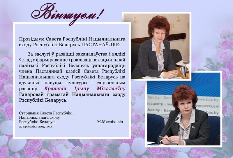 Віншуем Кралевіч Ірыну Мікалаеўну, прарэктара па навуковай рабоце УА МДПУ імя І.П. Шамякіна!