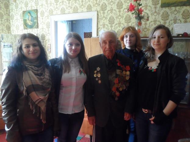 8 мая 2015 года волонтеры факультета технологии: Горбачева Катя, Лобода Наташа, Чуб Кристина и Грищенко Таня посетили ветеранов Великой Отечественной войны Матюнина Ивана Ивановича и Миронович Полину Алексеевну. Встречи прошли в благоприятной, доброжелательной обстановке. Студенты с особым волнением и трепетом высказали слова благодарности героям за подвиг, который они совершили для нас, нынешнего поколения, передали письма-поздравления, собранные в ходе патриотической акции и, конечно же, цветы и подарки к празднику.
