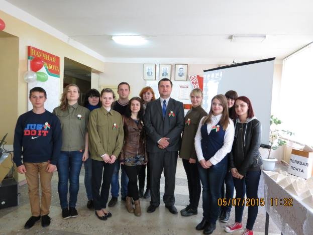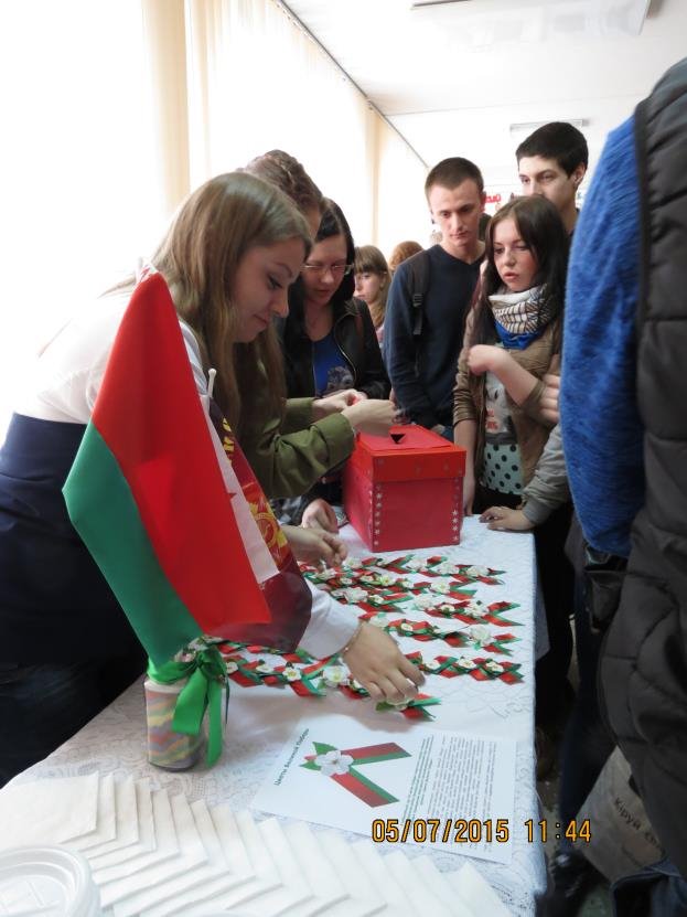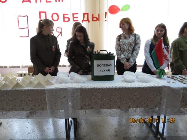 7 мая 2015 года в преддверии Дня Великой Победы в 11.30 холл второго этажа корпуса №2 на некоторое время преобразился, превратившись в праздничную интерактивную площадку. Открыл мероприятие декан факультета технологии Навныко В.Н., который отметил важность и значимость памяти и уважения нашим дедам и прадедам, спасшим весь мир от фашизма и подарившим нам мирную жизнь, подчеркнул нашу роль в сохранении этой памяти и поддержании традиций чествования героев праздника.
