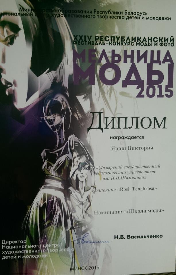 Поздравляем Ярош Викторию и Крысанову Алену с успешным участием в XXIV республиканского фестиваля-конкурса моды и фото «Мельница Моды 2015» и желаем дальнейших творческих успехов!